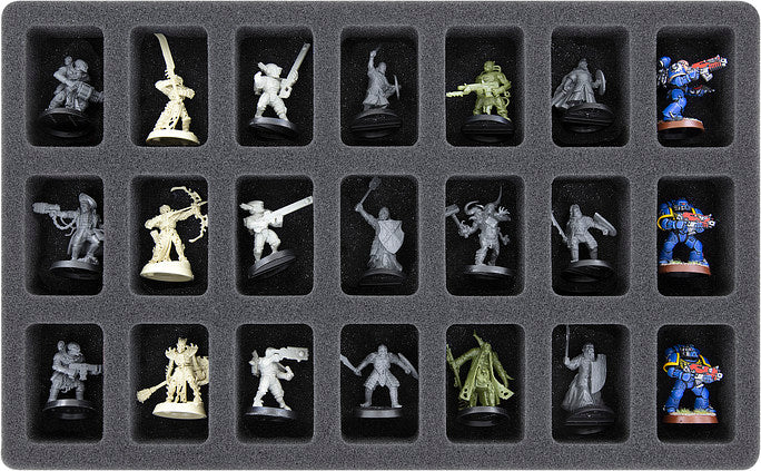 - 2 foam trays each with 21 compartments for miniatures on 25 mm bases (IGMFJX035BO)