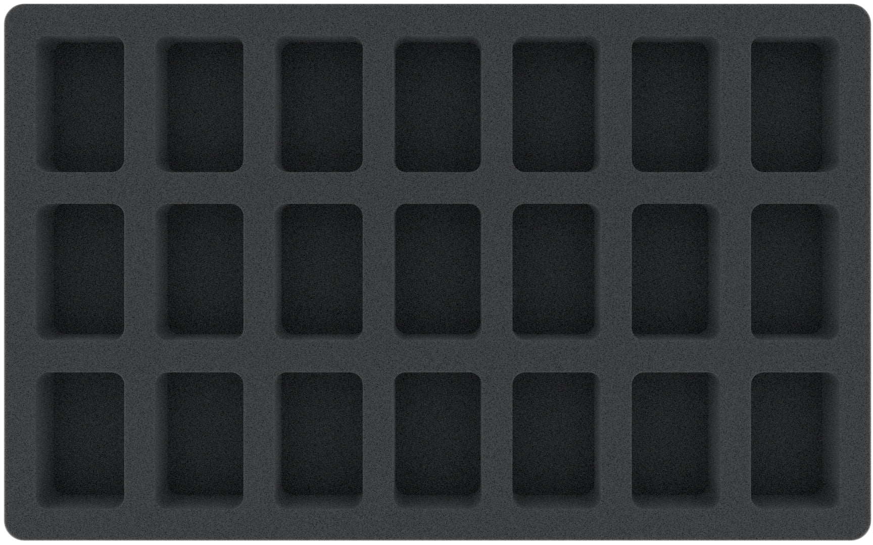 - 4 foam trays each with 21 compartments for miniatures on 25 mm bases (IGMFJX035BO)