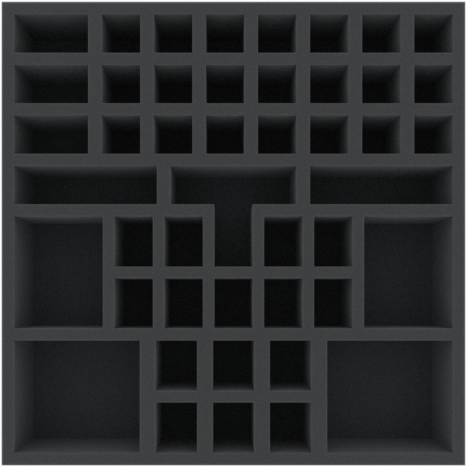 A total of 46 compartments are available in the insert for your models and your game material. Whether Pharaoh, Priest, or Sphinx, each miniature gets its own custom-fit compartment. Thanks to the precise cut, the miniatures have a tight fit. Even when transported through a raging sandstorm, they stay in place. The soft, fine-pored foam protects delicate parts from breaking off and the colors of your painted models from scratches and paint abrasion.