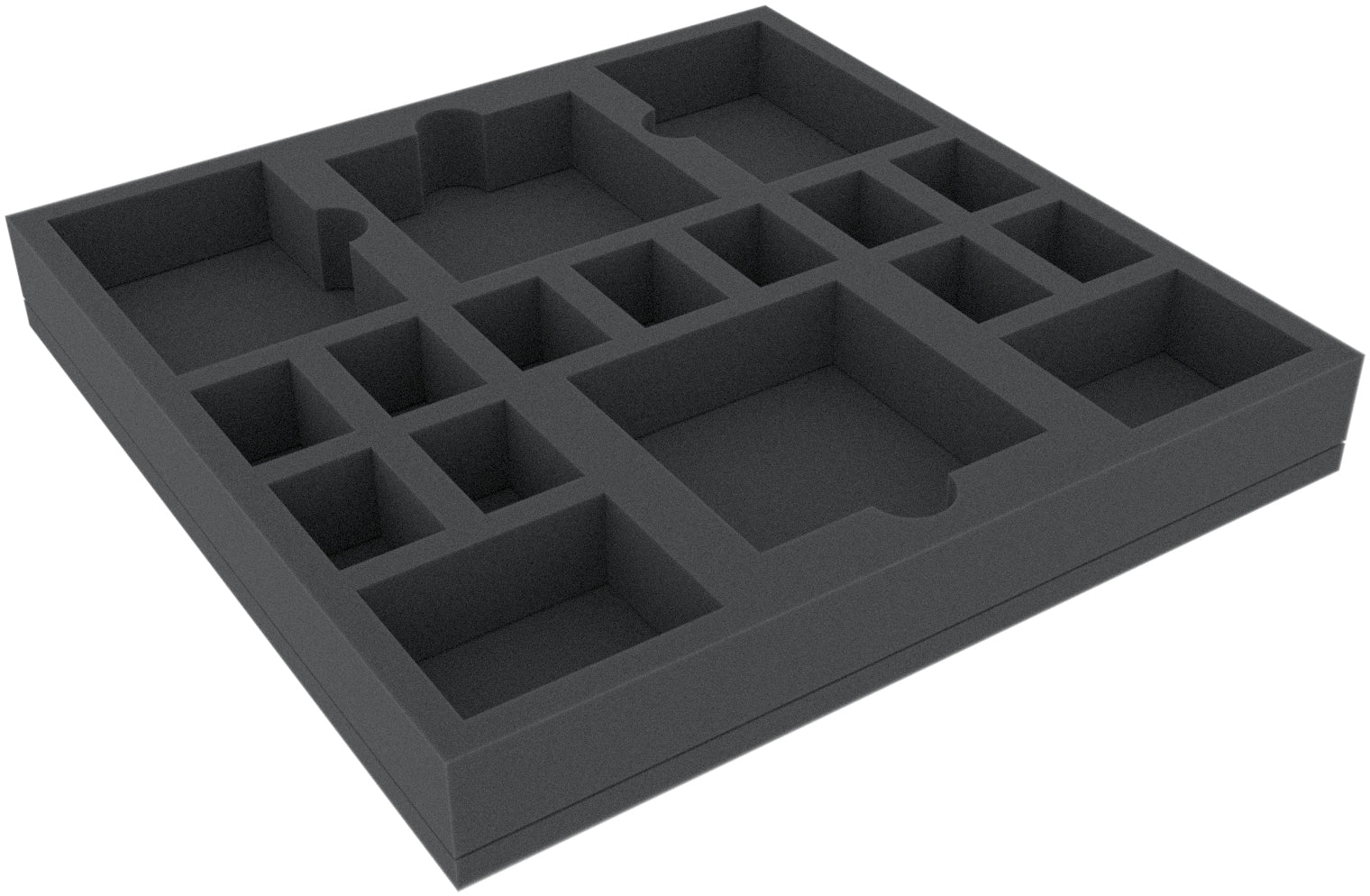 The insert offers 17 compartments to store all game components. The custom-fit cut compartments give dragon and player figures a tight fit. Even if it should get bumpy during transport, nothing slips. The soft, fine-pored foam protects filigree parts from breaking off and the colors of your painted models from scratches and paint abrasion.