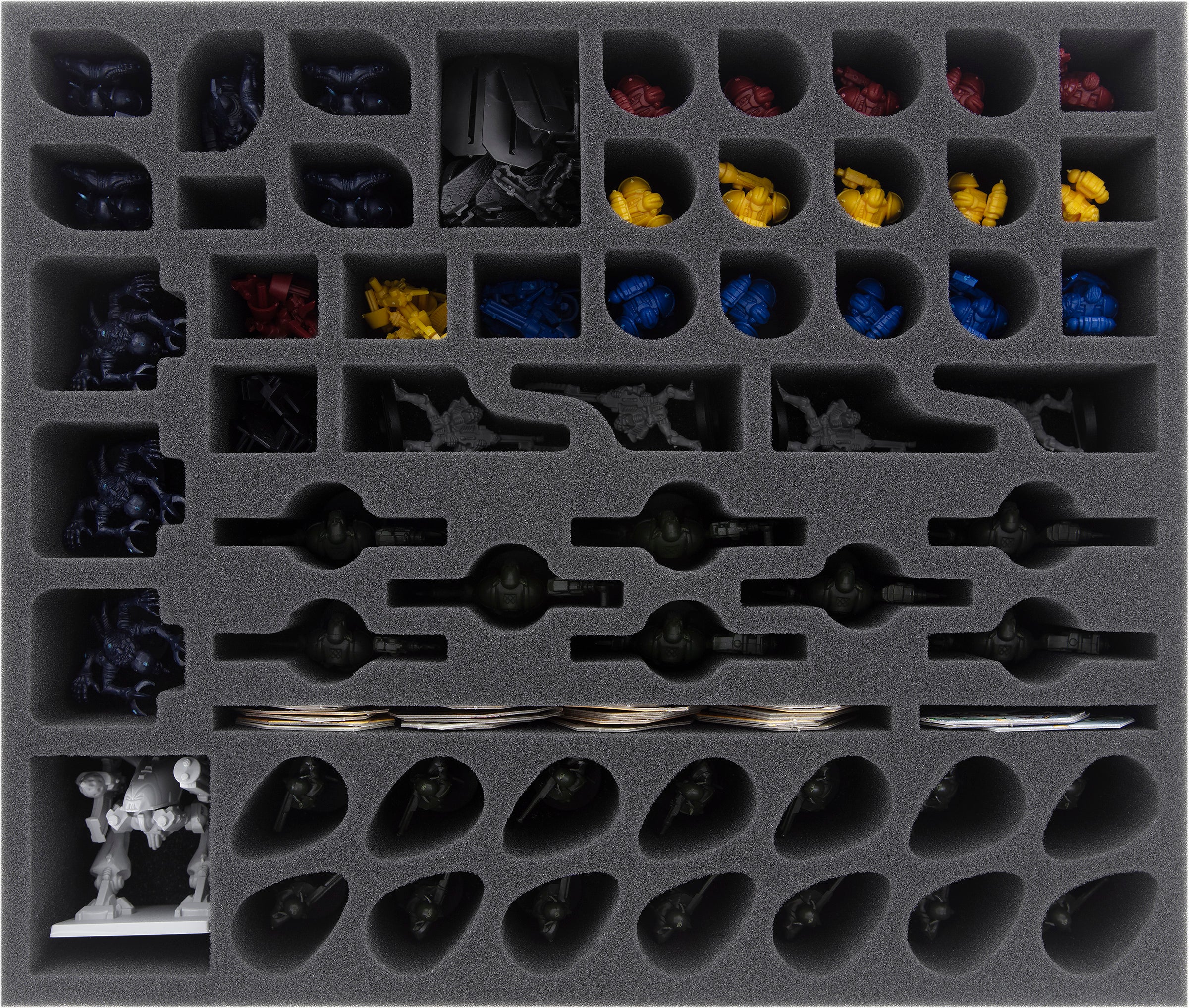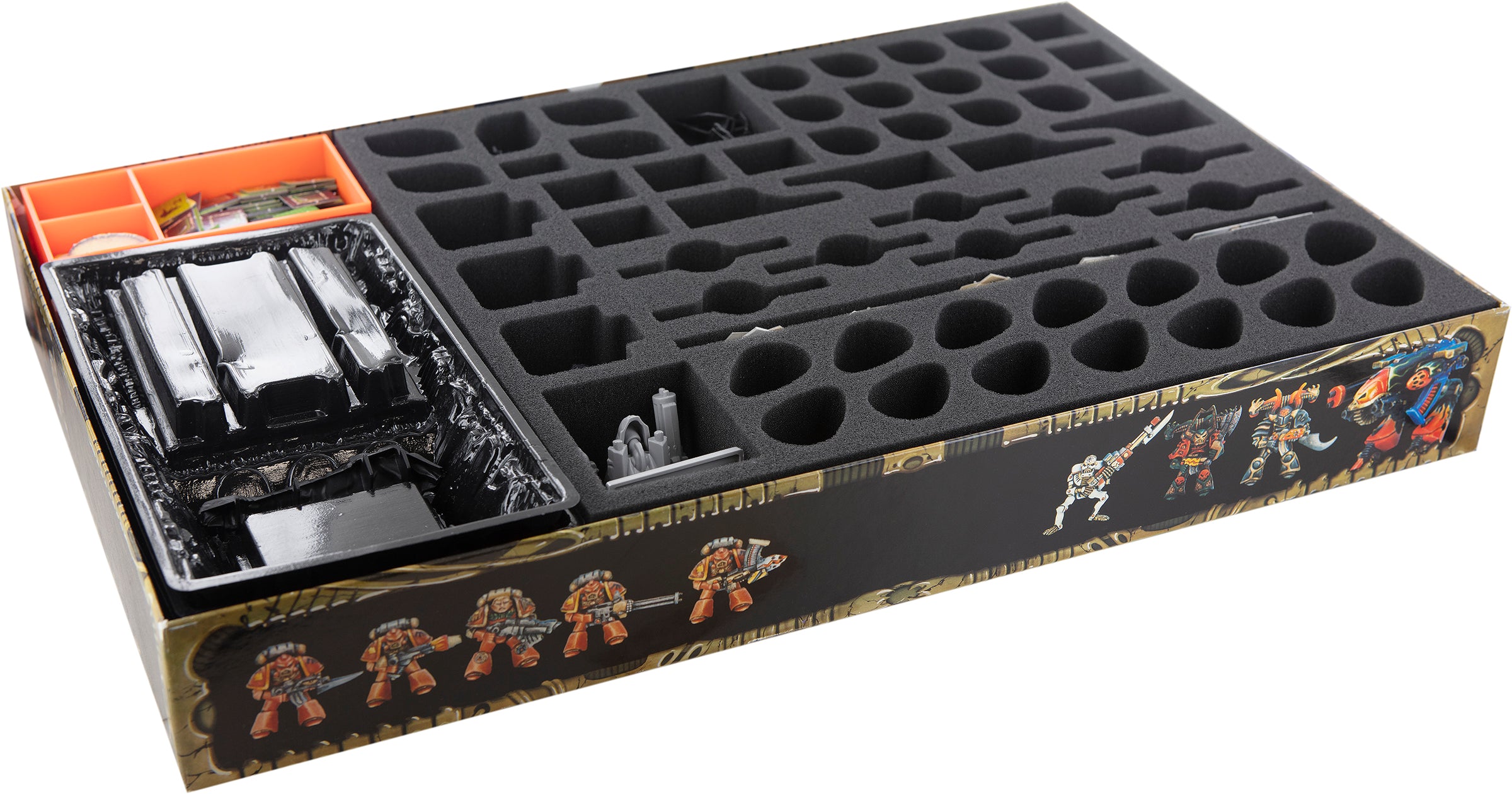 Whether Marine or Alien - the foam insert has an customized compartment reserved for each miniature. From Dreadnought to Genestealers to Gretchin, they all get a miniature-precisely tailored compartment. The custom-fit cut helps with sorting and also ensures that nothing slips around during transport. Sensitive parts, such as bolter, claws or power sword, are thus optimally protected from damage. If you have painted your models, you can be sure that the colors are still free from scratches and abrasion after transport.