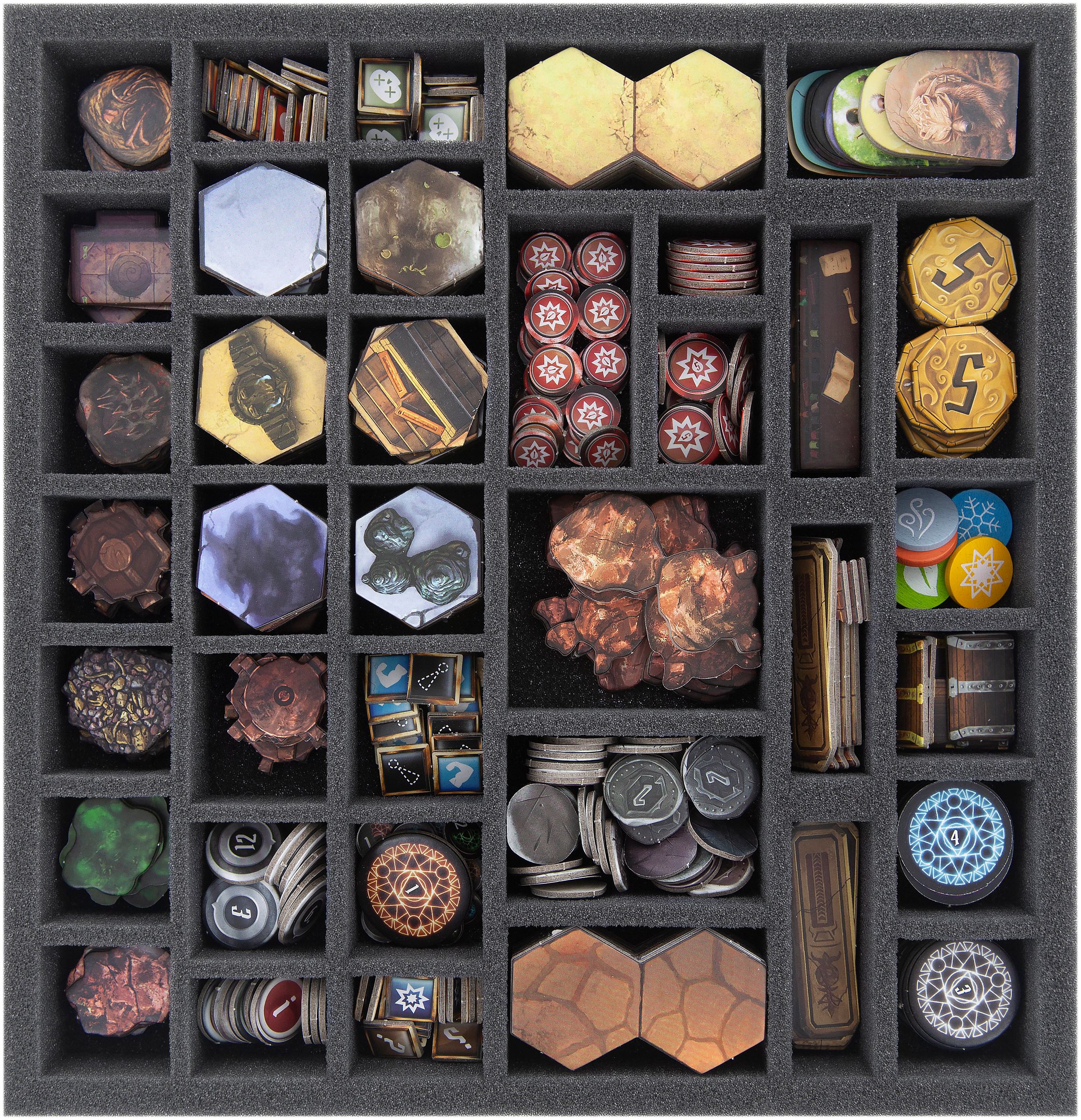 - Two foam inserts help you sort tokens and other small-sized game materials.