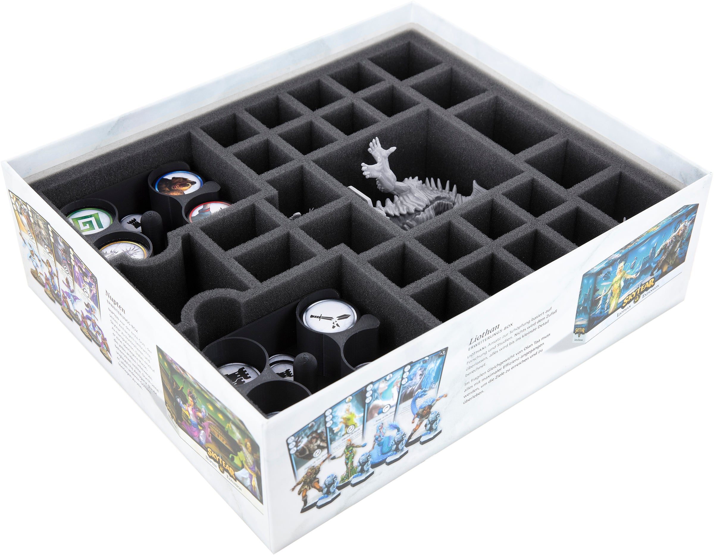• 1 foam tray with 29 compartments for Skytear miniatures, cards, and game material