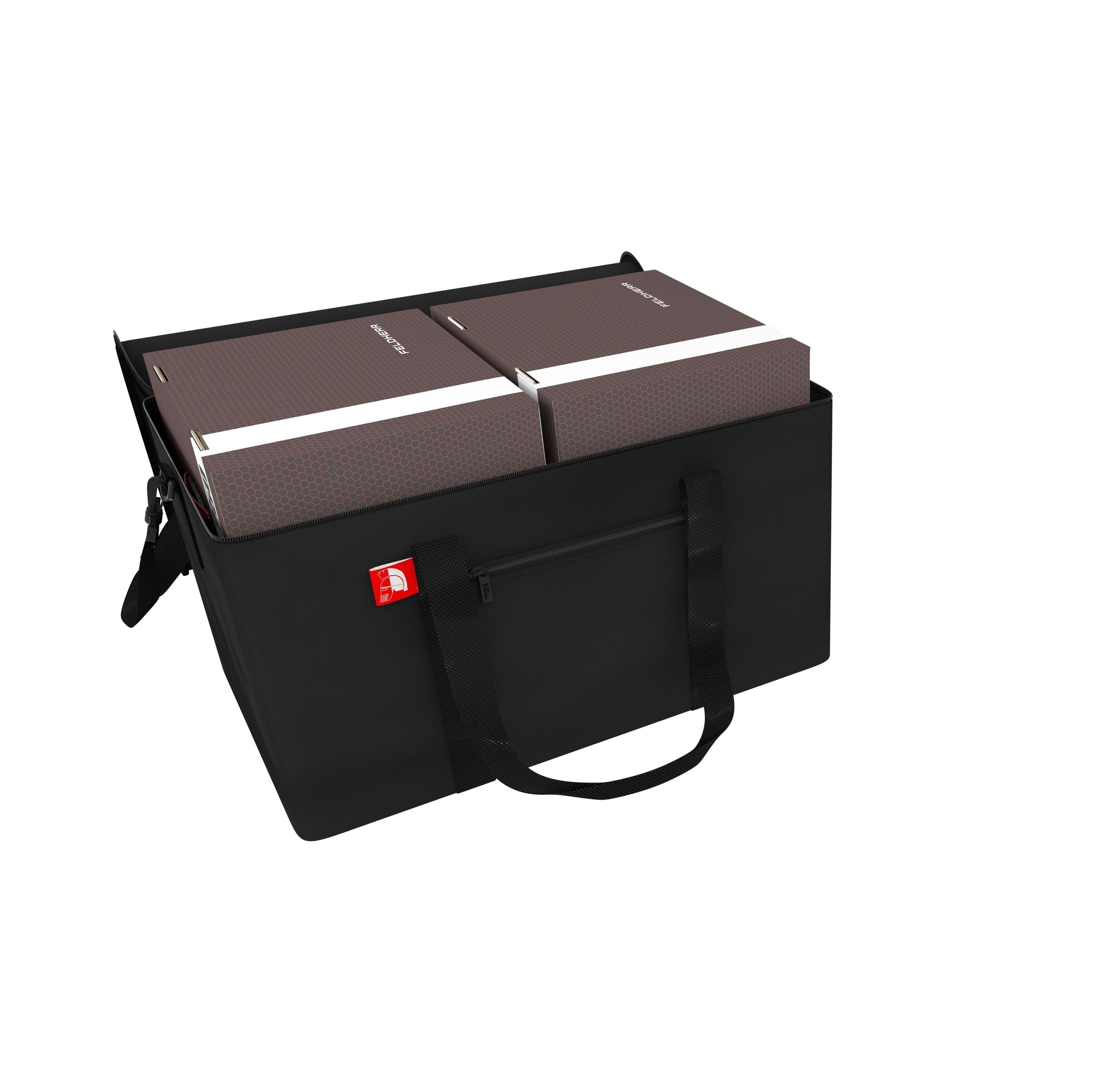 The boxes fits exactly into our Transporter bag made of light but durable fabric. In addition to the large main compartment, the bag has a small side compartment. It can be lifted with two carrying handles or comfortably shouldered with the sturdy carrying strap.