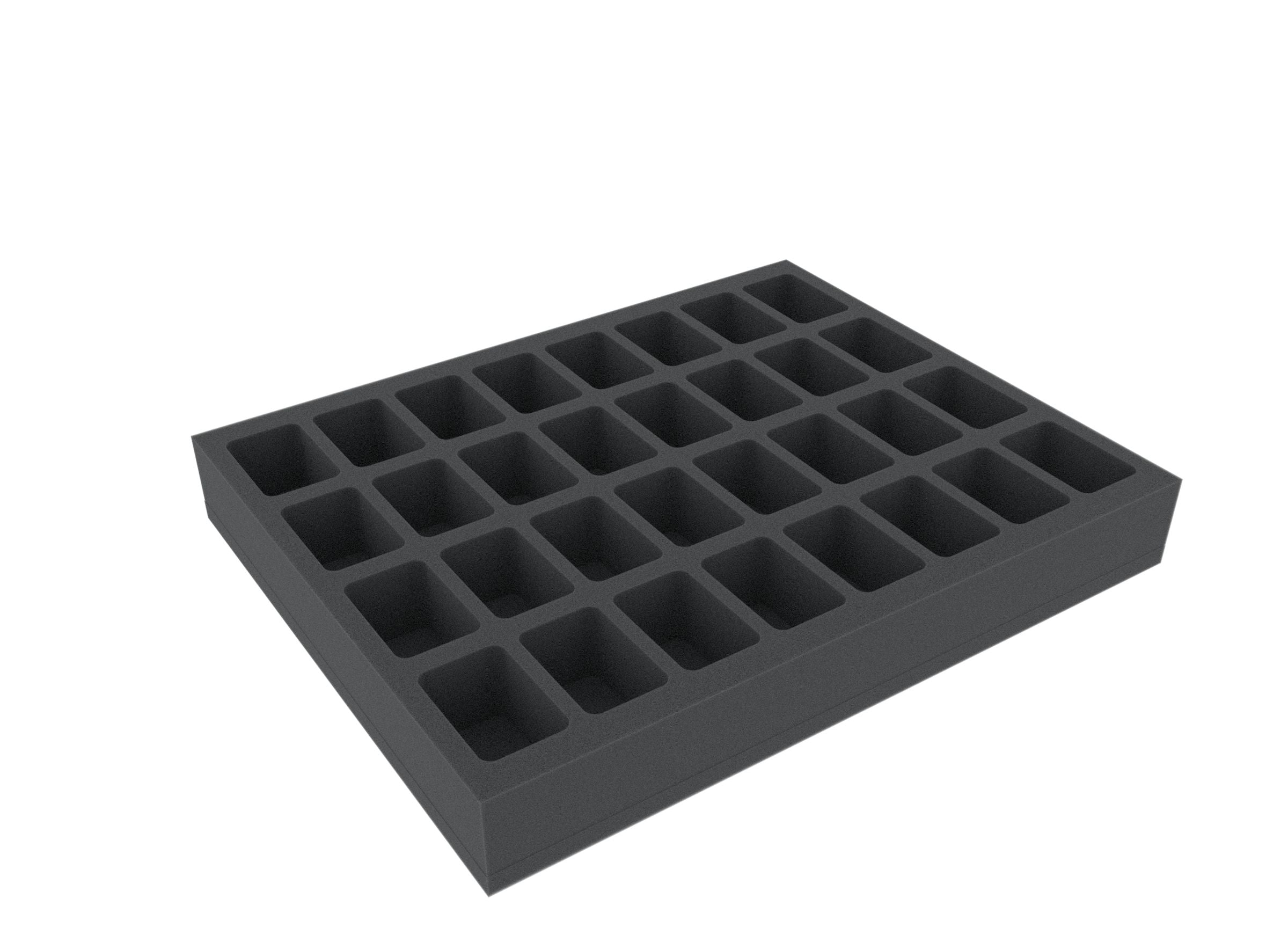 With this Feldherr foam tray up to 32 WWX miniatures are safely stored. The compartments of the same size are ideal for storing standard units on 30 mm bases (base size S) clearly arranged and well protected.