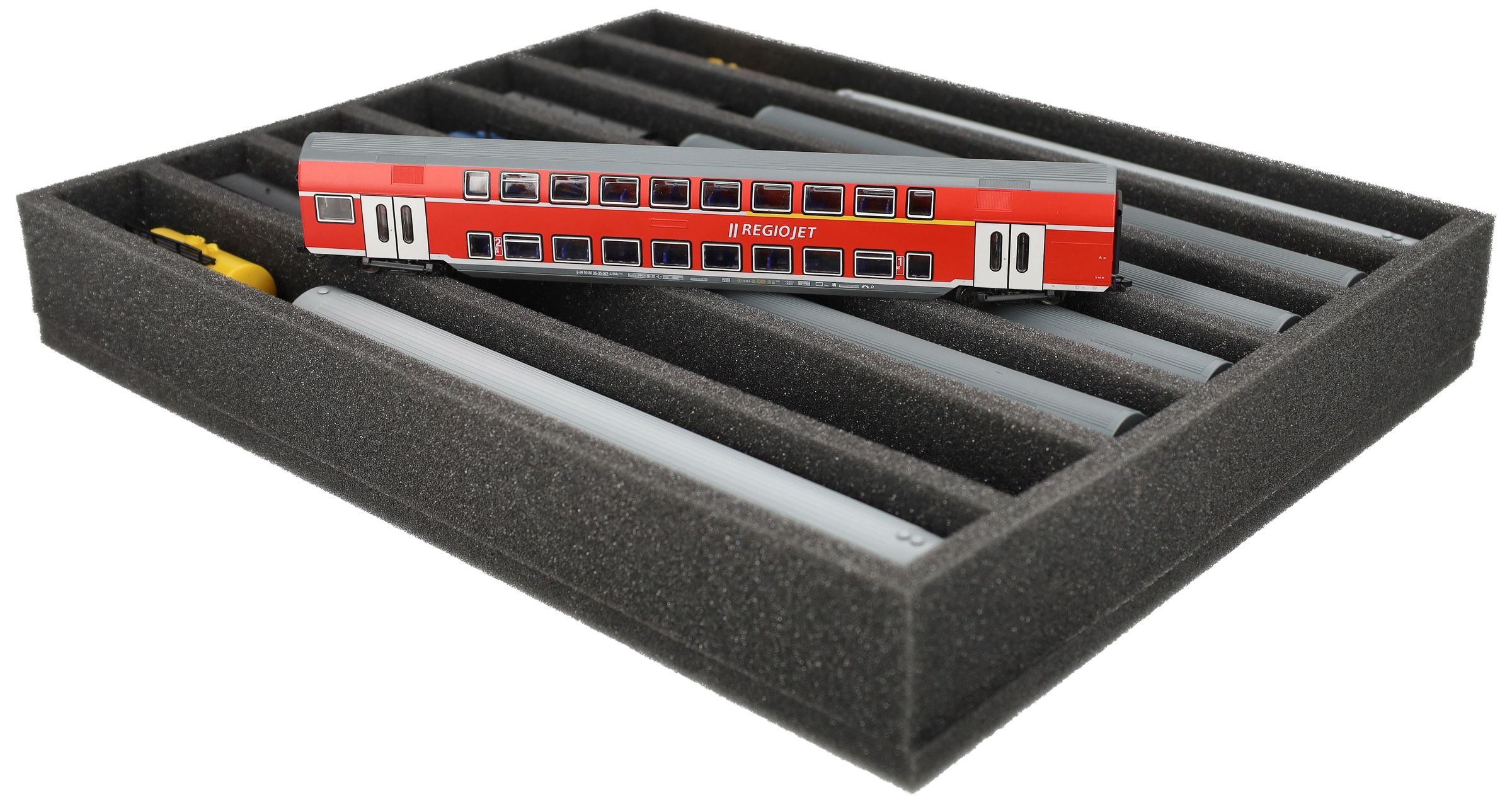 Soft, comfortable and safe! Foam insert for railways in gauge N. The wagons and locomotives are stored standing.