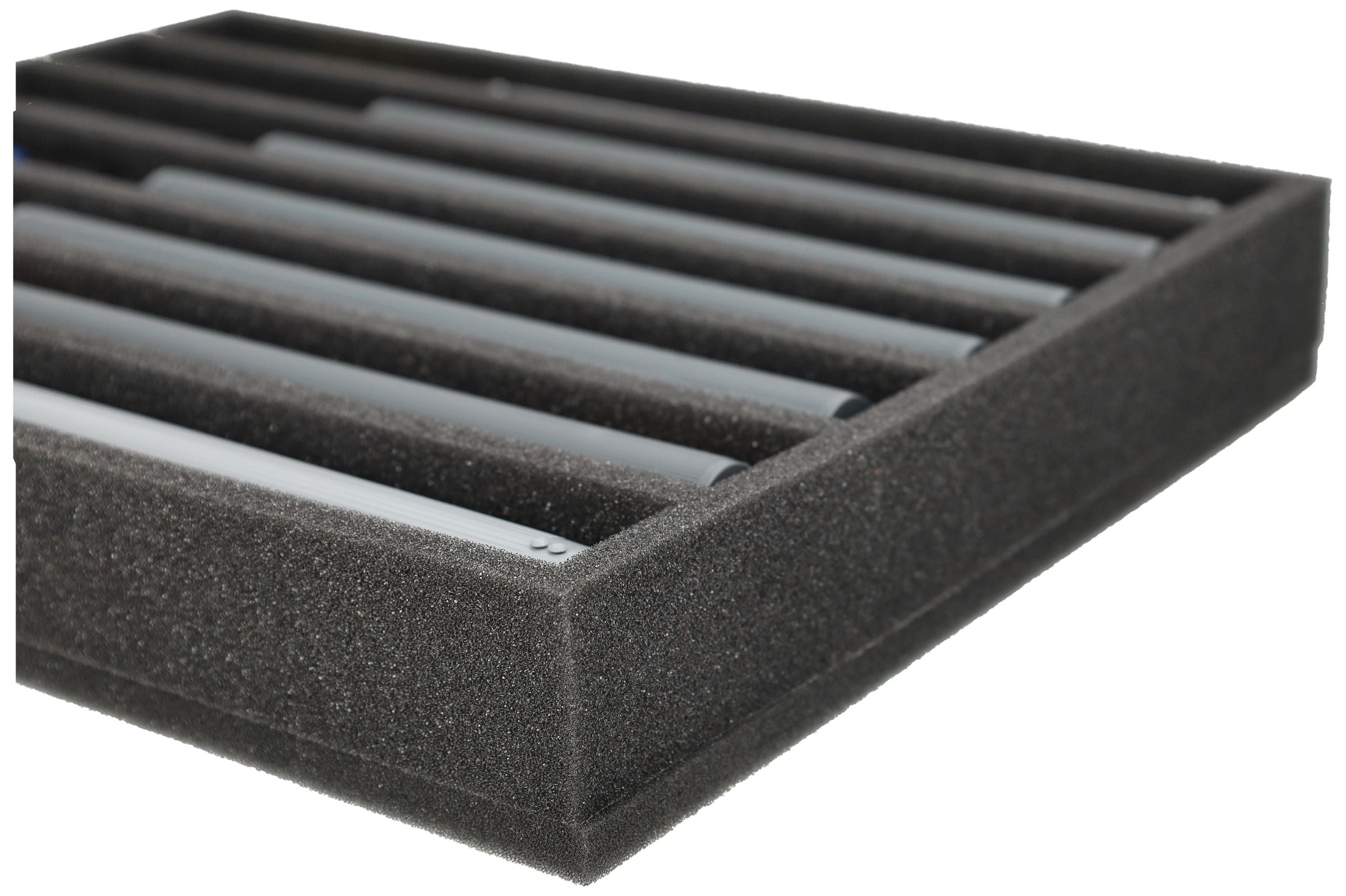 The Full-Size foam tray has the dimensions: 345 mm x 275 mm x 50 mm total height (40 mm usable height + 10 mm foam base).