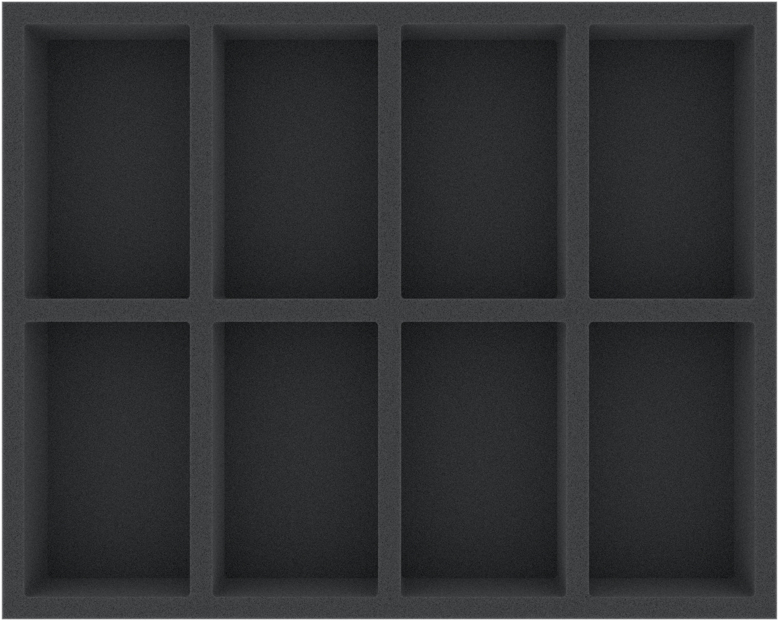 This 50 mm high foam tray is divided into 8 compartments. It is particularly suitable for Vanari Dawnriders and similar sized miniatures.