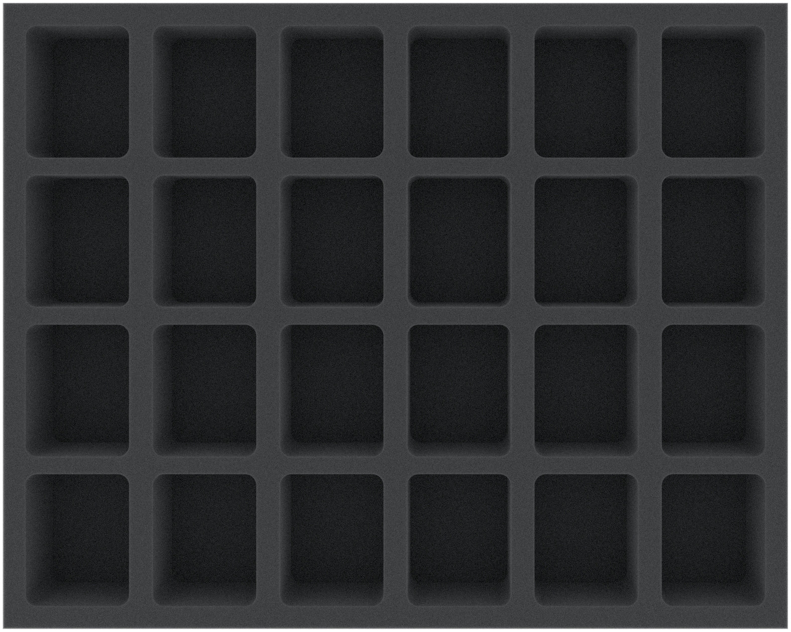 On this Feldherr foam tray you have space for up to 24 miniatures of your army. The insert is especially suitable for storing Space Marines on 40 mm bases like Terminators and similar sized models.
