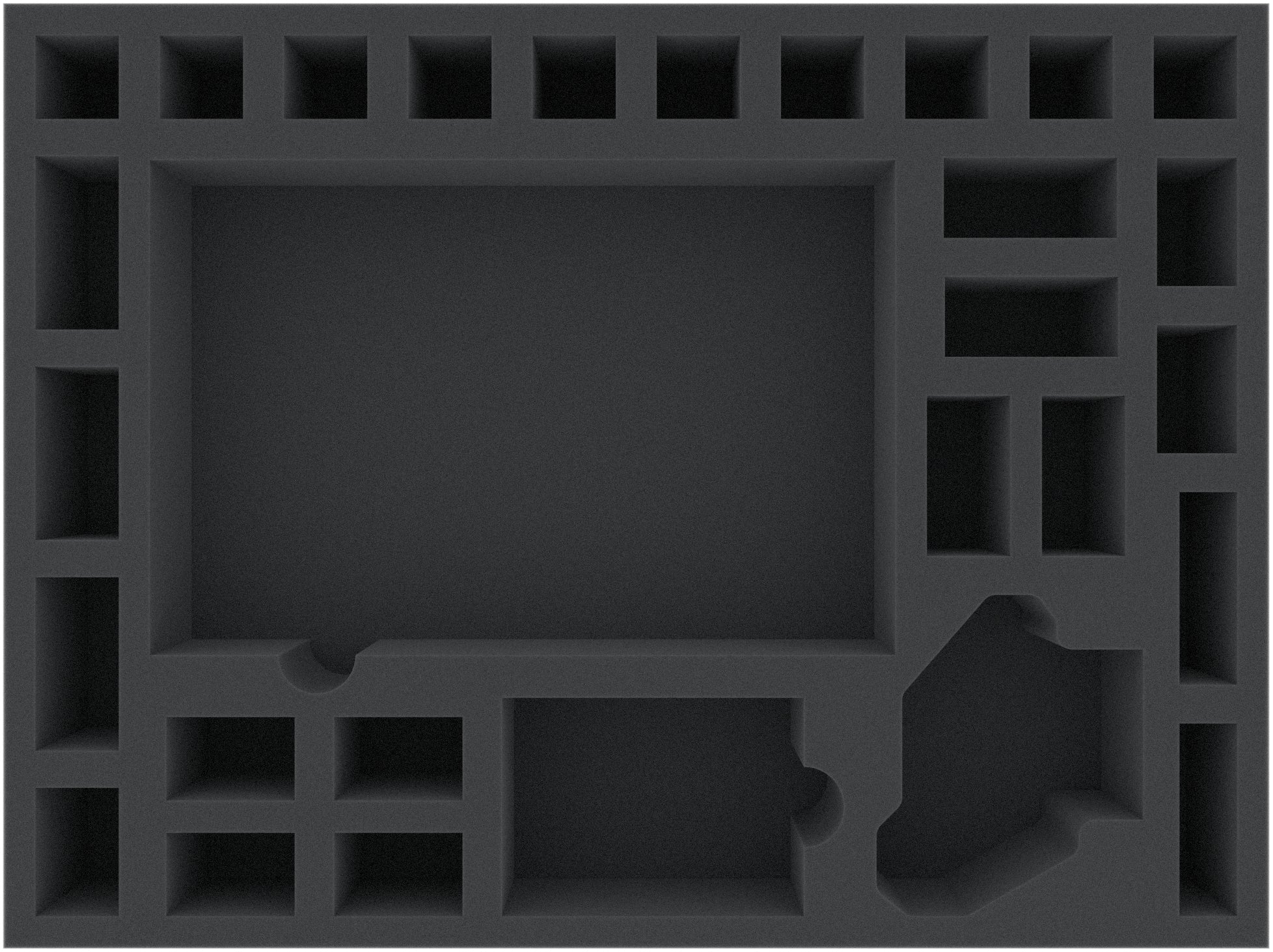 This 60 mm high foam tray is divided into 29 compartments. It is particularly suitable for the safe storage of tabletop and board game miniatures, as well as other fragile models and small parts.