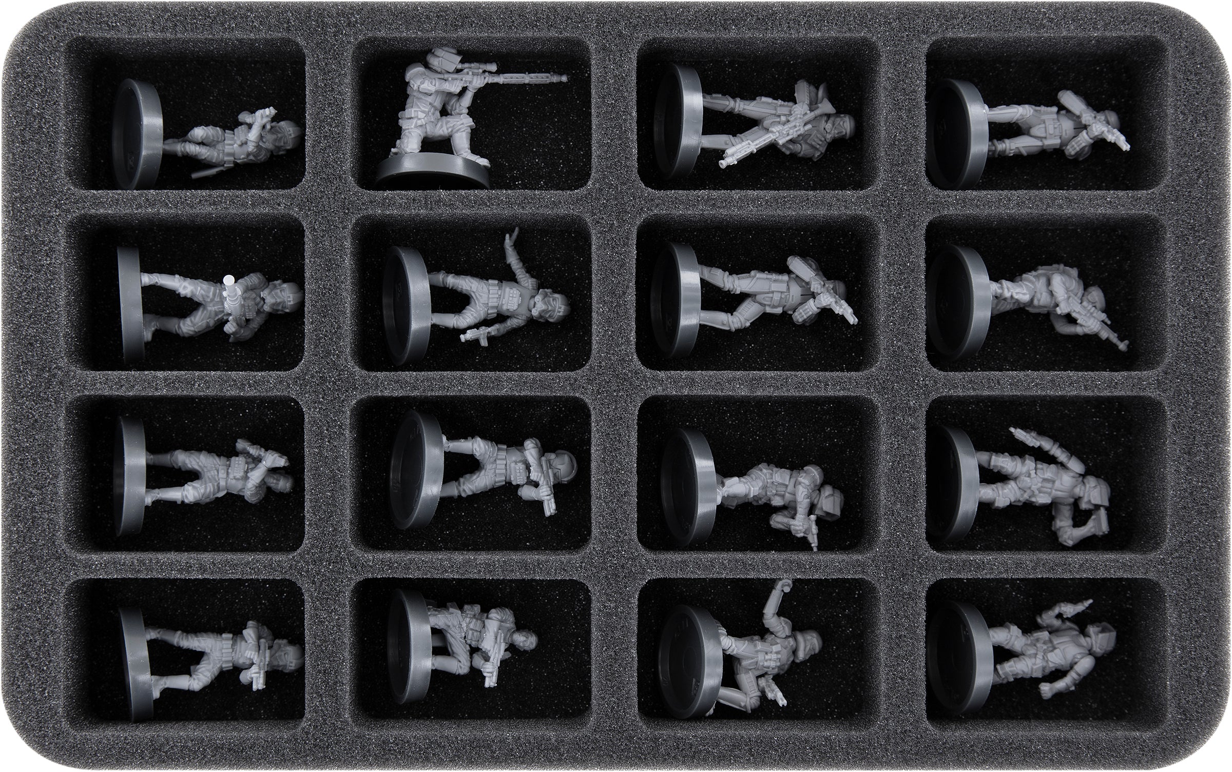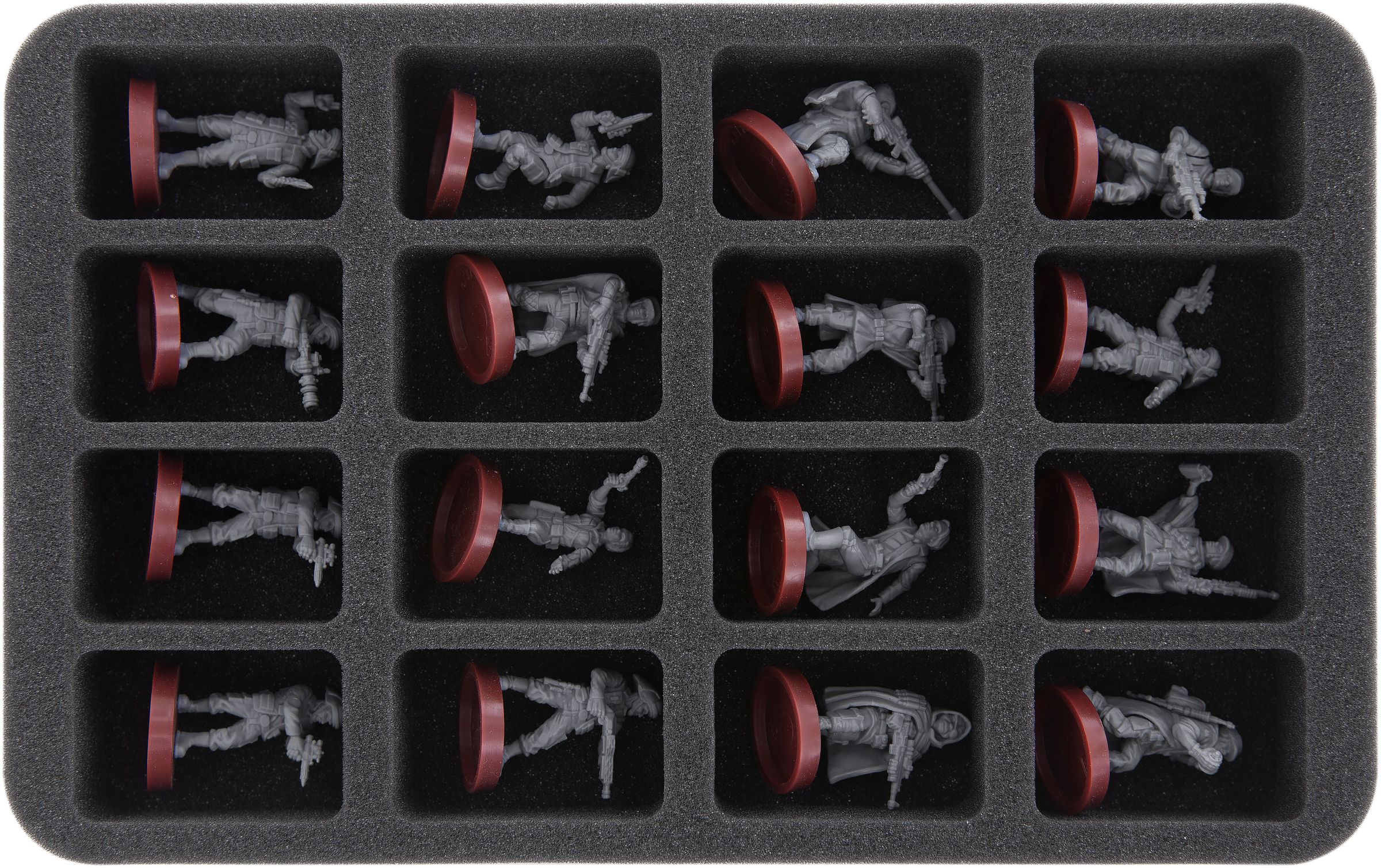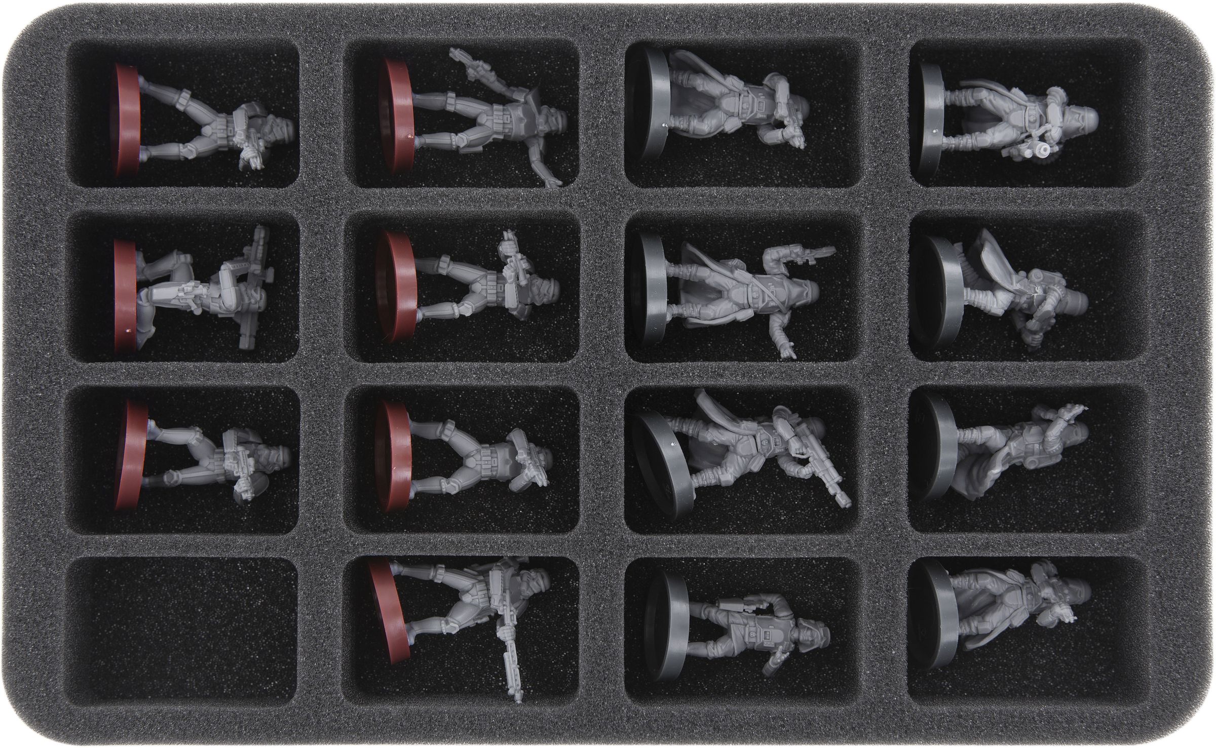 In the total of 16 compartments of our half-size foam tray for Star Wars: Legion can be accommodated up to 16 miniatures.