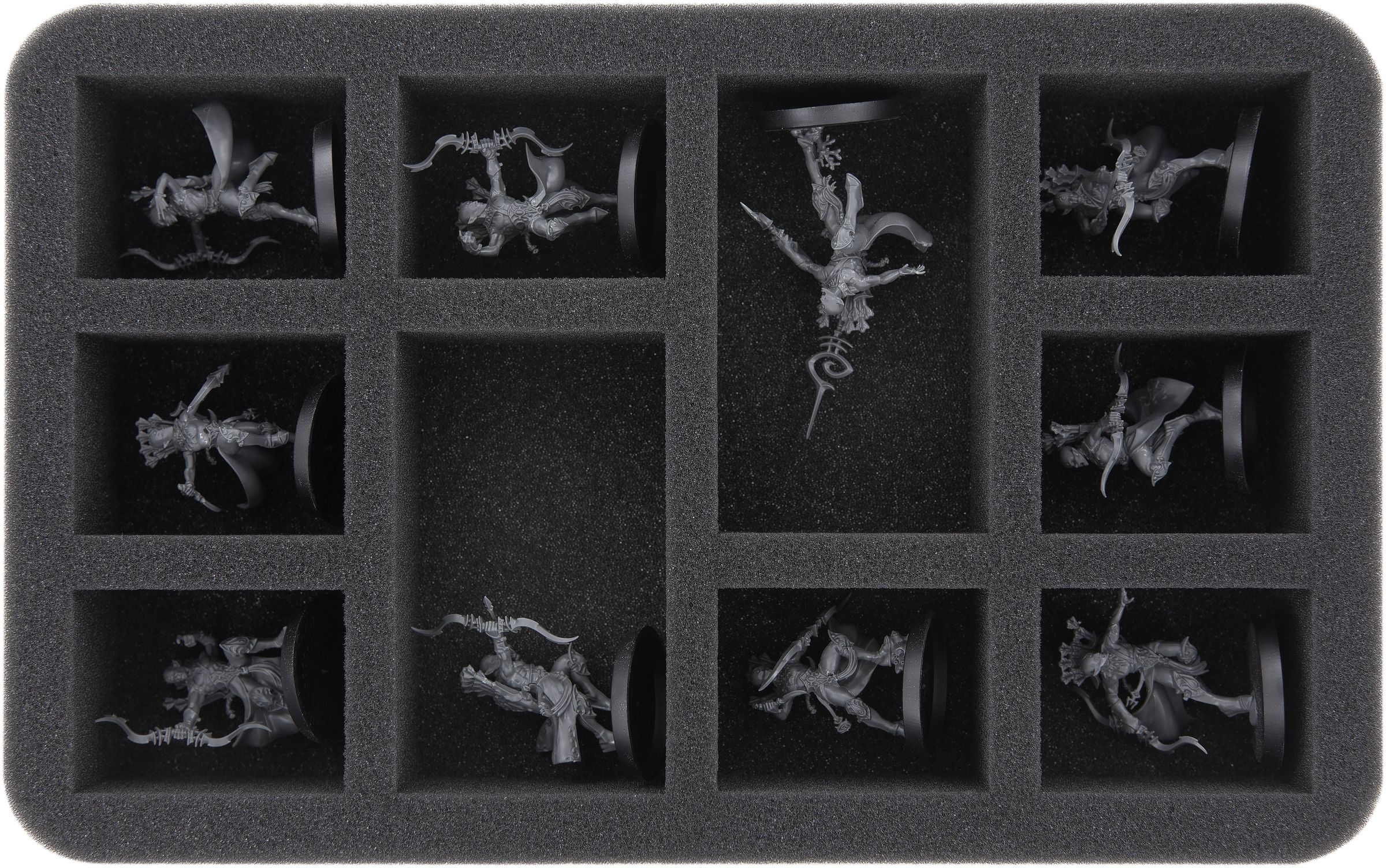 On this Feldherr foam tray you have space for up to 10 miniatures of your army. The insert is especially suitable for storing the Arkanaut Company oder Grundstok Thunderer and similar sized models.