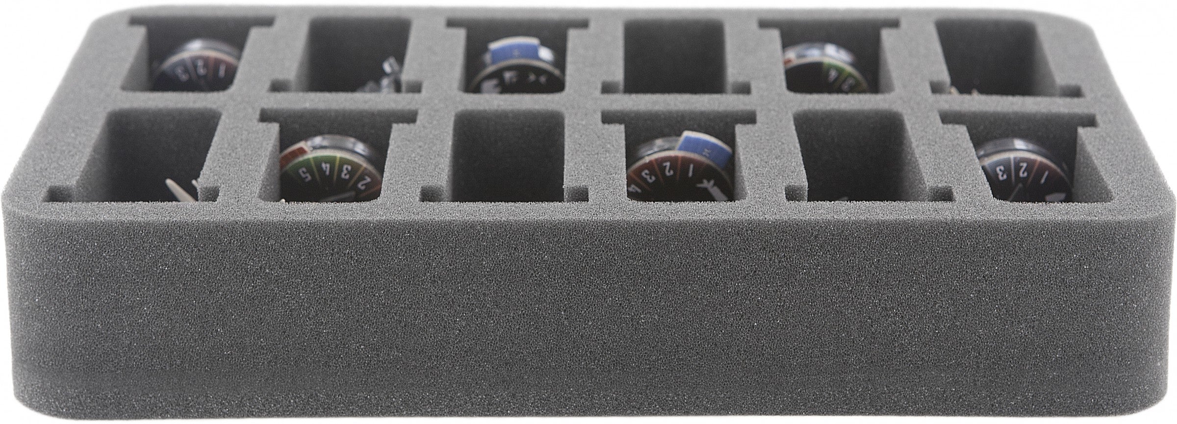 Lo spessore di 50 mm per questo vassoio di schiuma è il risultato di una base di 10 mm di schiuma e di un vassoio di schiuma con un'altezza effettiva di 40 mm.