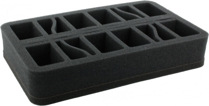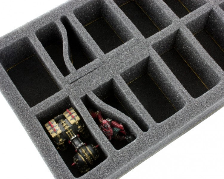 For slightly larger models - based on 28 mm tabletop systems. The tray is ready to use - glued 10 mm foam base. The 50 mm depth of the foam is result from 10 mm foam base and slot foam tray with 40 mm effective depth.