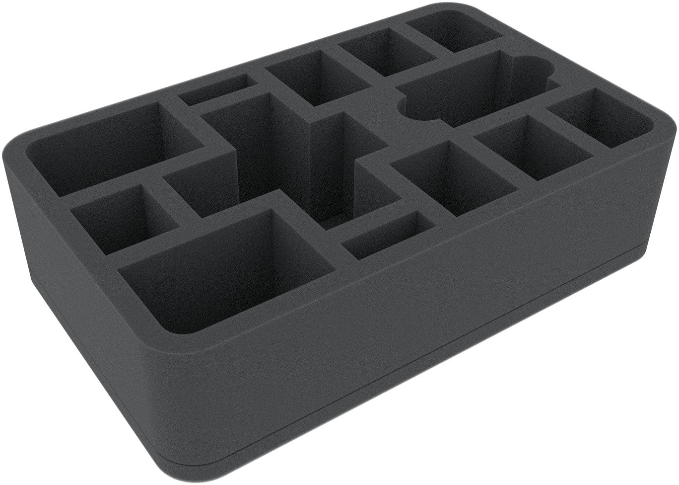This 70 mm high foam tray is divided into 13 compartments. Whether the Witch King or Golgotar, each miniature gets its own compartment. The custom-fit cut ensures the figures have a firm seat and do not slip during transport. The soft foam reliably protects sensitive details from damage. The colors of painted figures are also safe, as the foam prevents abrasion of the colors and scratches.