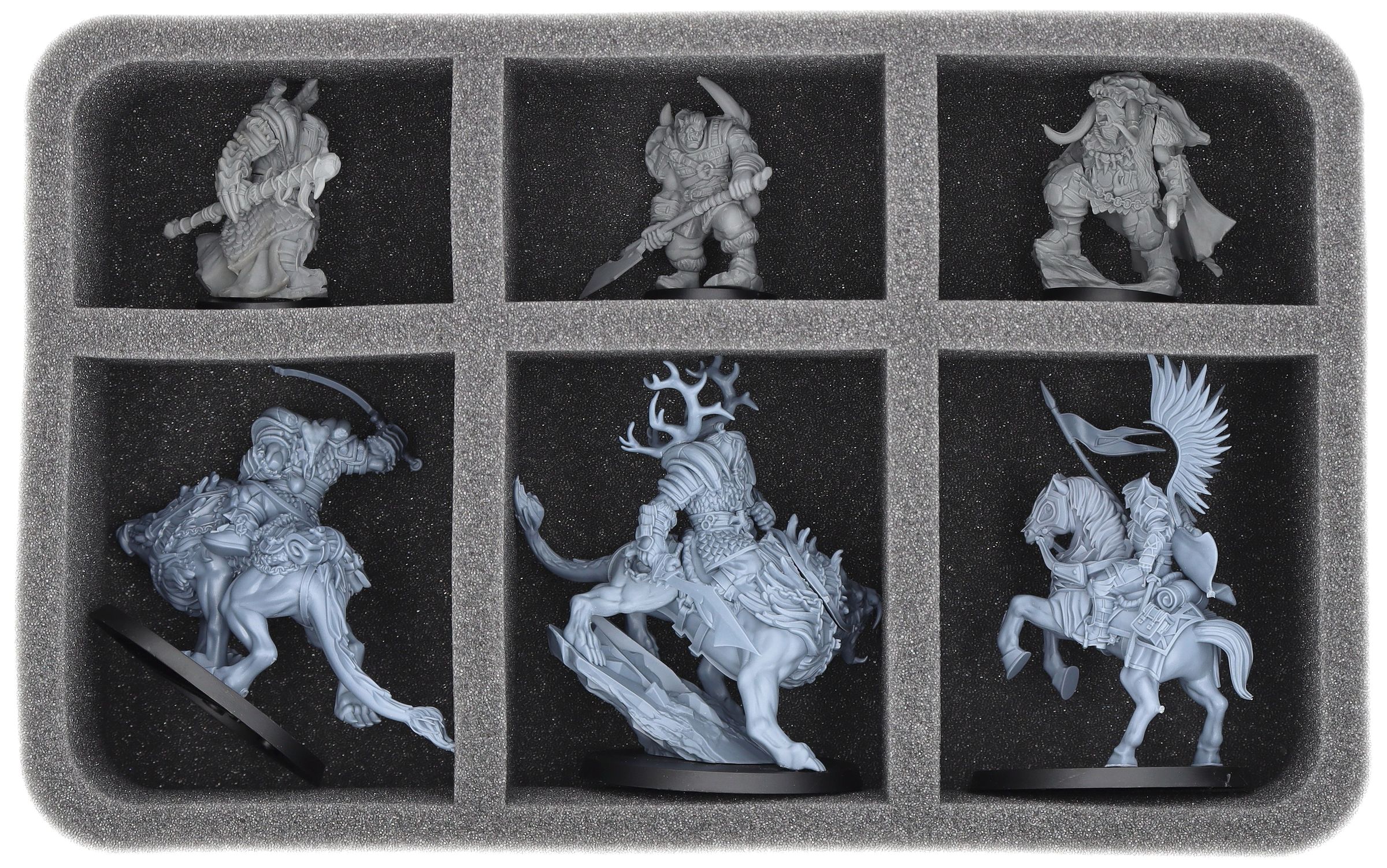 On this Feldherr foam tray you have space for up to 6 miniatures of your army. The insert is especially suitable for storing figures of the Northern Tribes and similar sized models.
