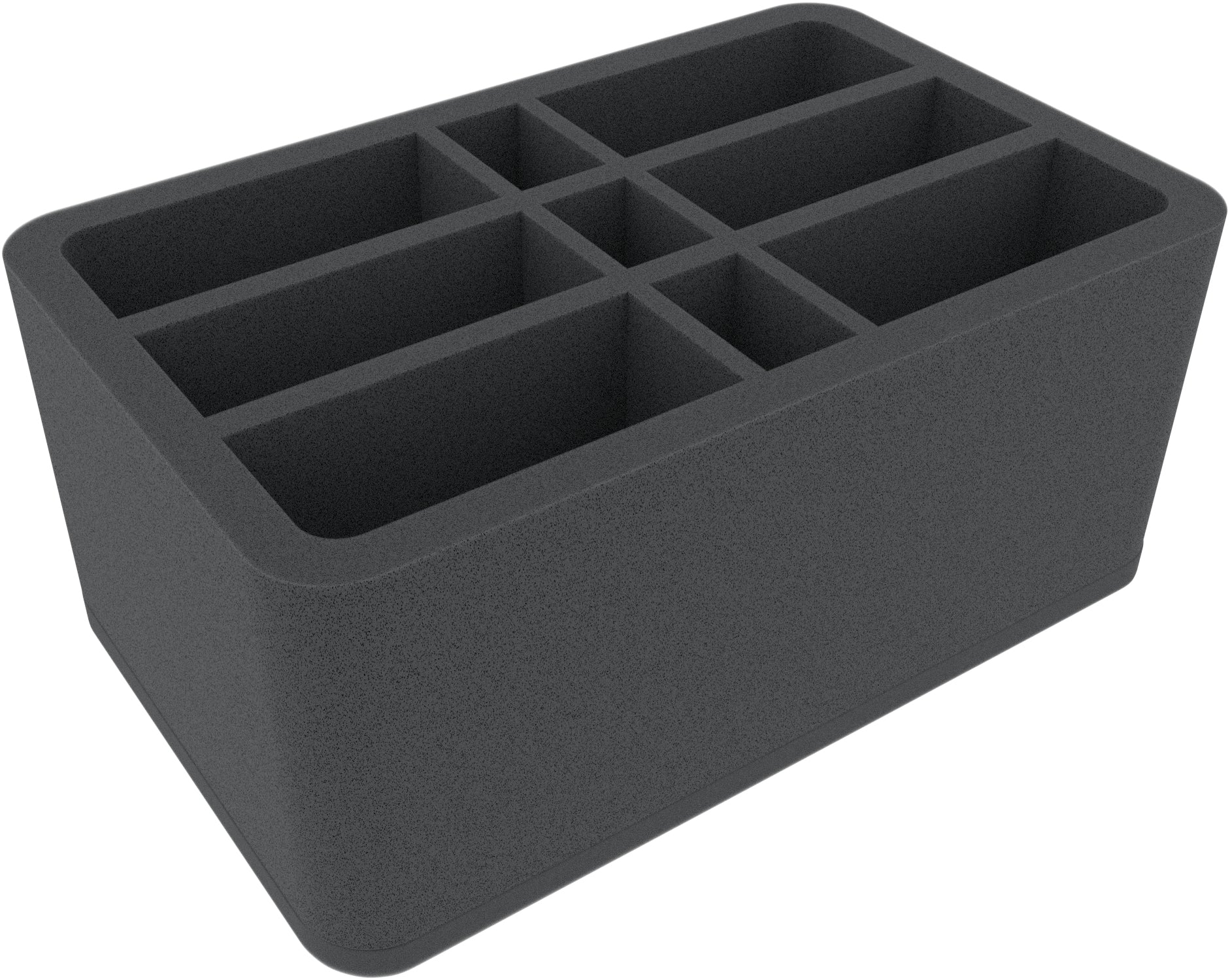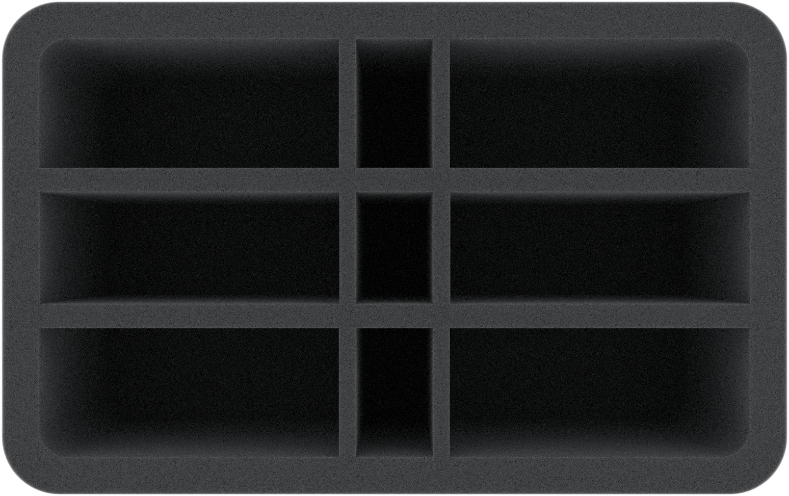 This Half-Size foam tray is divided into 9 compartments with 3 different sizes. It is particularly suitable for elongated tabletop and board game miniatures with bases up to 40 mm.