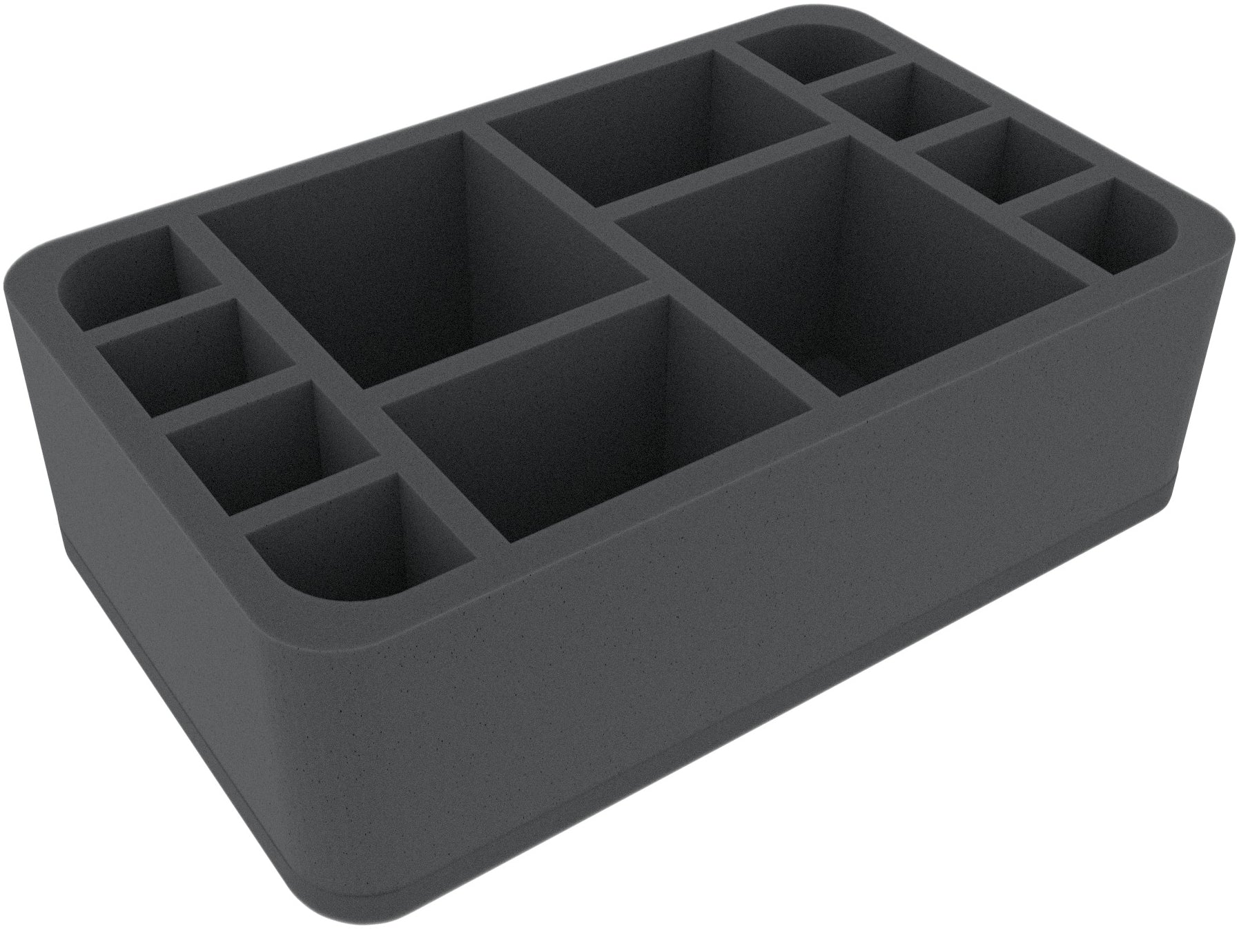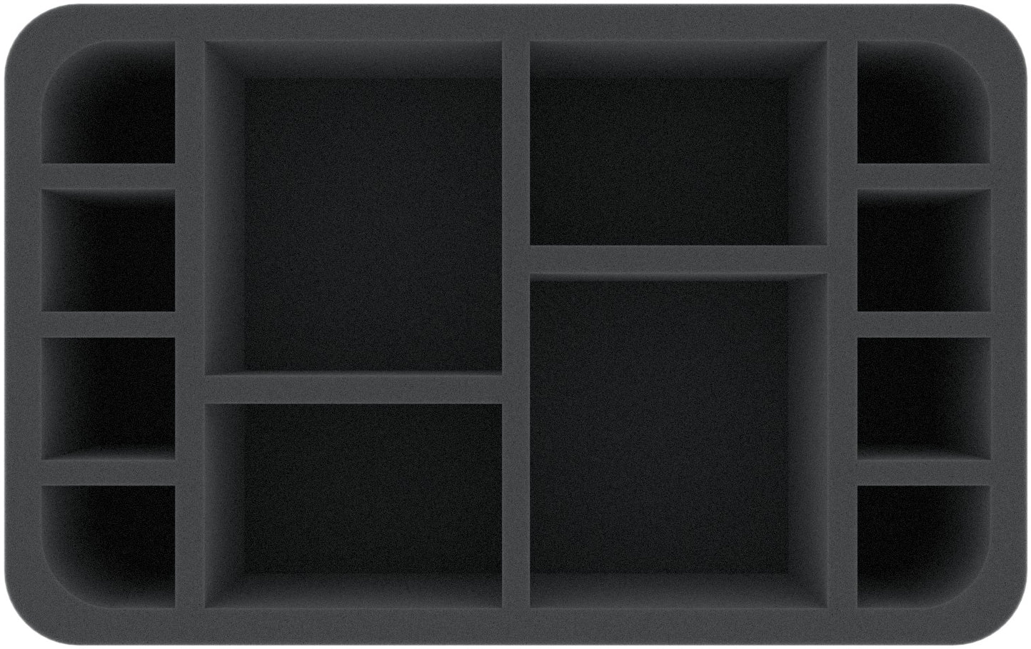 This Half-Size foam tray is divided into 12 compartments of different sizes, which are suitable for heroes, monsters, and warriors from classic board games or tabletop systems.