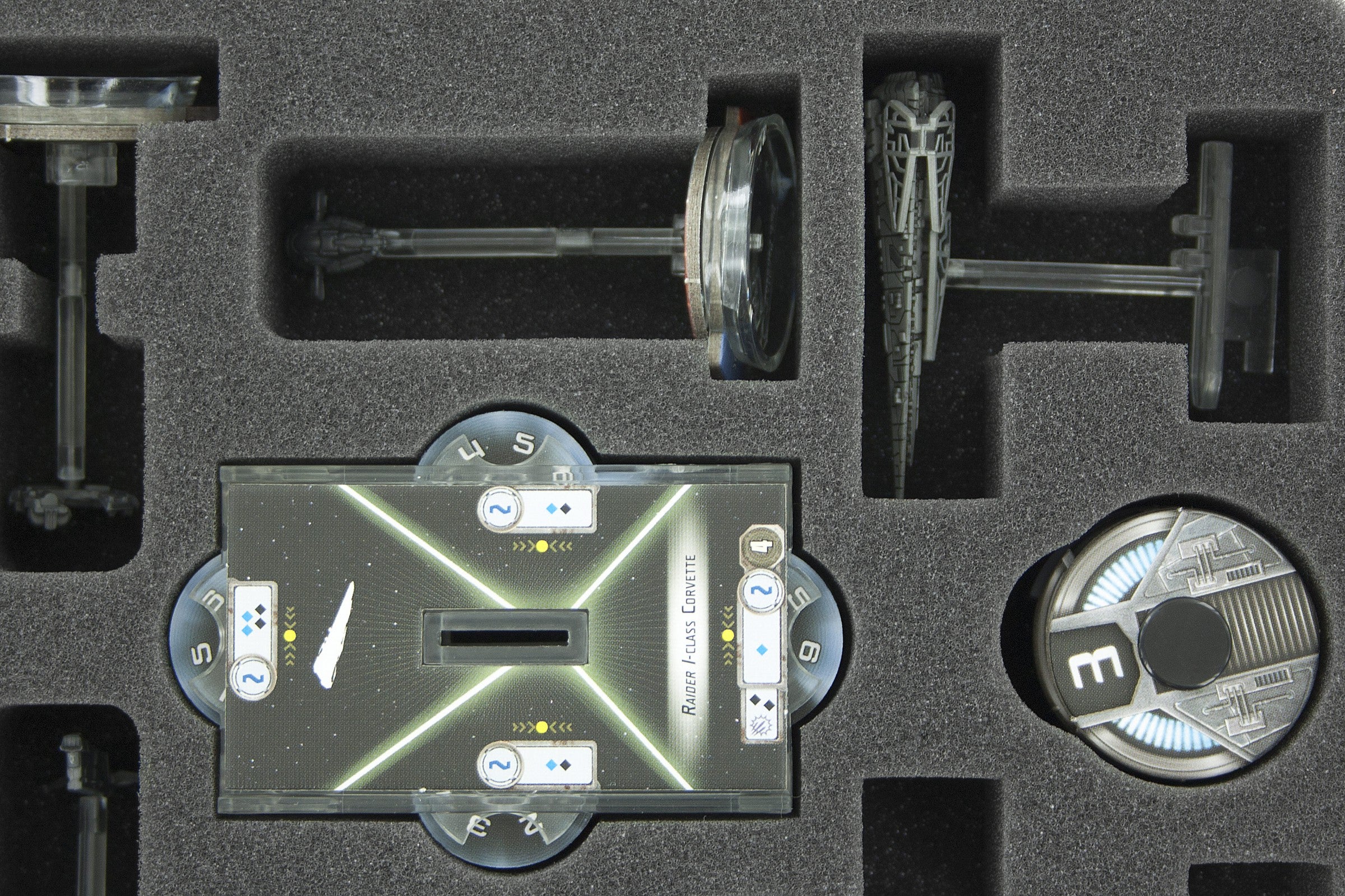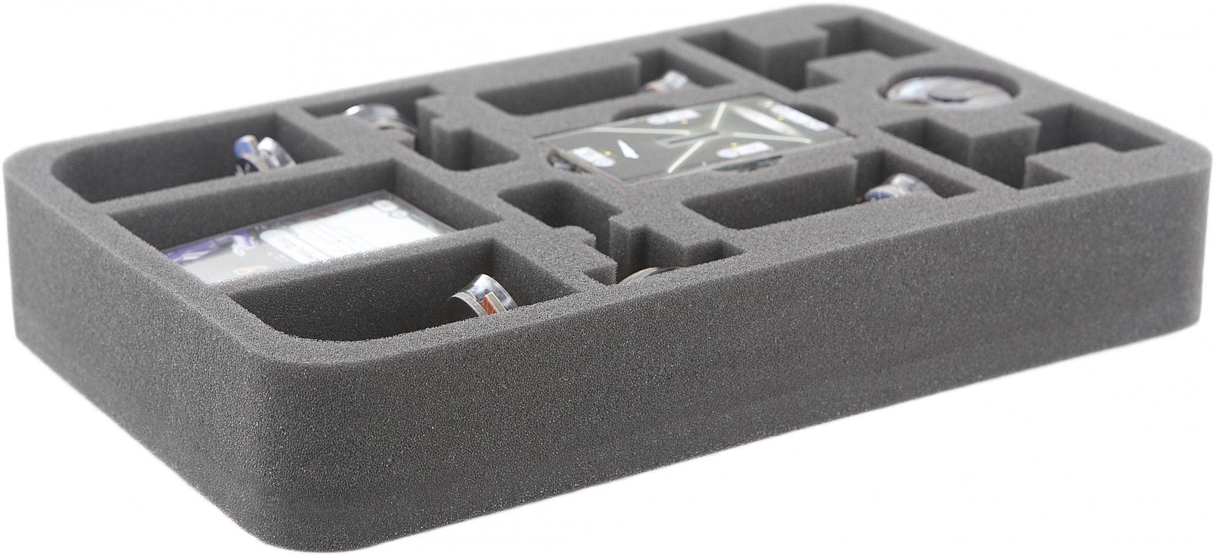 Specialmente per il vassoio in schiuma Star Wars Armada Wave II. C'è spazio sufficiente per ospitare due Raider imperiali, quattro navi-cattivi e due squadroni Imperiale. Inoltre, c'è abbastanza spazio per le carte nelle maniche, i Commando e le chiamate rapide.