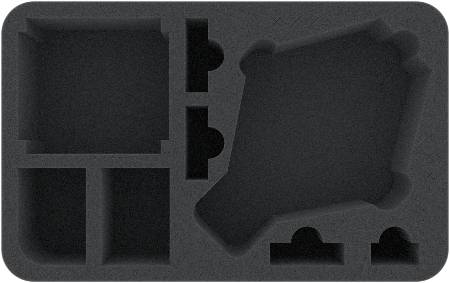 Questo vassoio di schiuma Feldherr Half-Size è stato progettato appositamente per Star Wars X-Wing Ghost. Un modello del VCX-100 può essere conservato e trasportato in sicurezza con questo inserto. Inoltre, è possibile montare fino a due Fighters. Naturalmente, il vassoio in schiuma offre spazio anche per gli accessori. Il supporto base può essere affondato nelle apposite fessure trasversali.