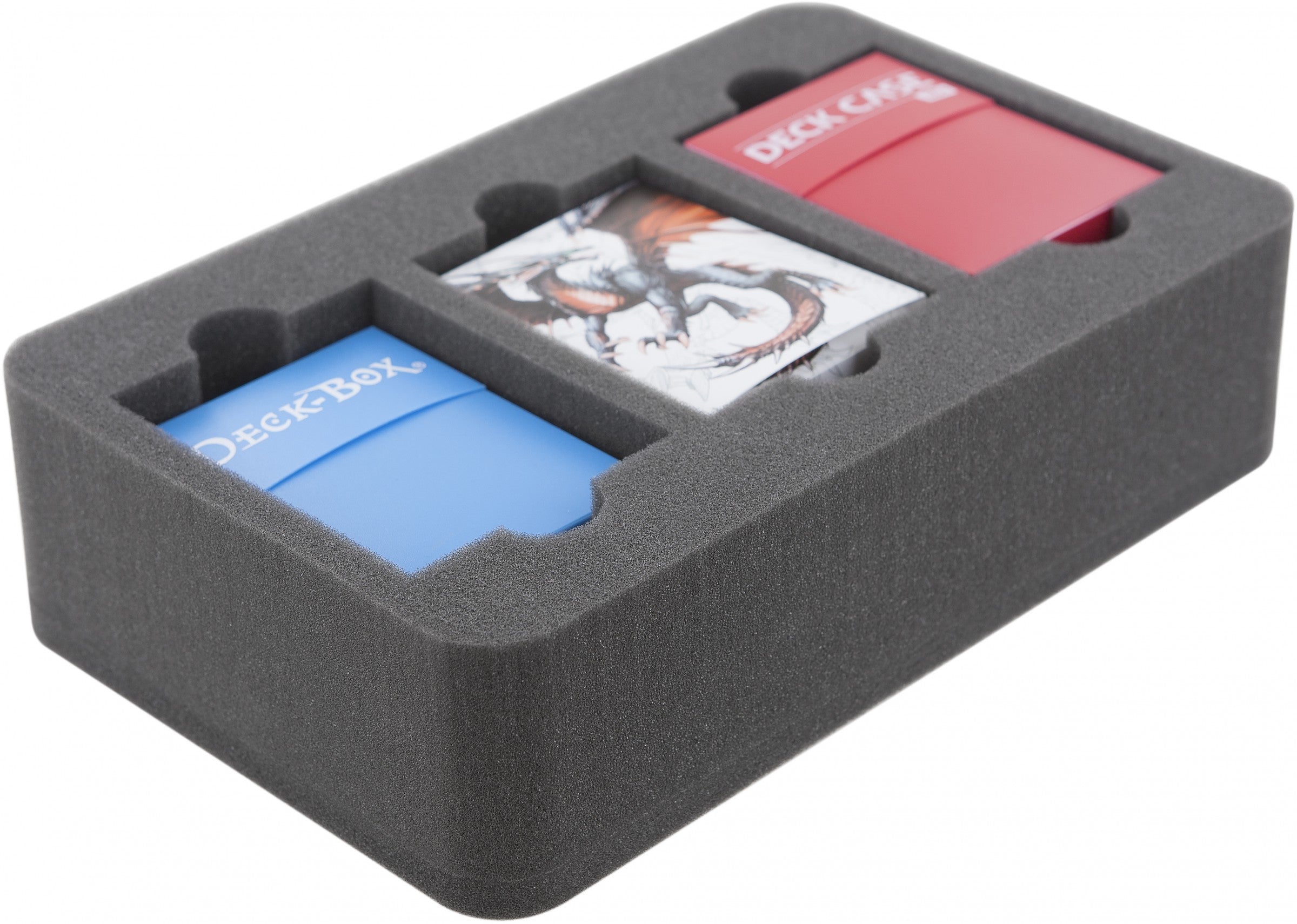 The Feldherr foam tray with 3 compartments for (sleeved) game cards in Standard Game Size and for deck boxes.