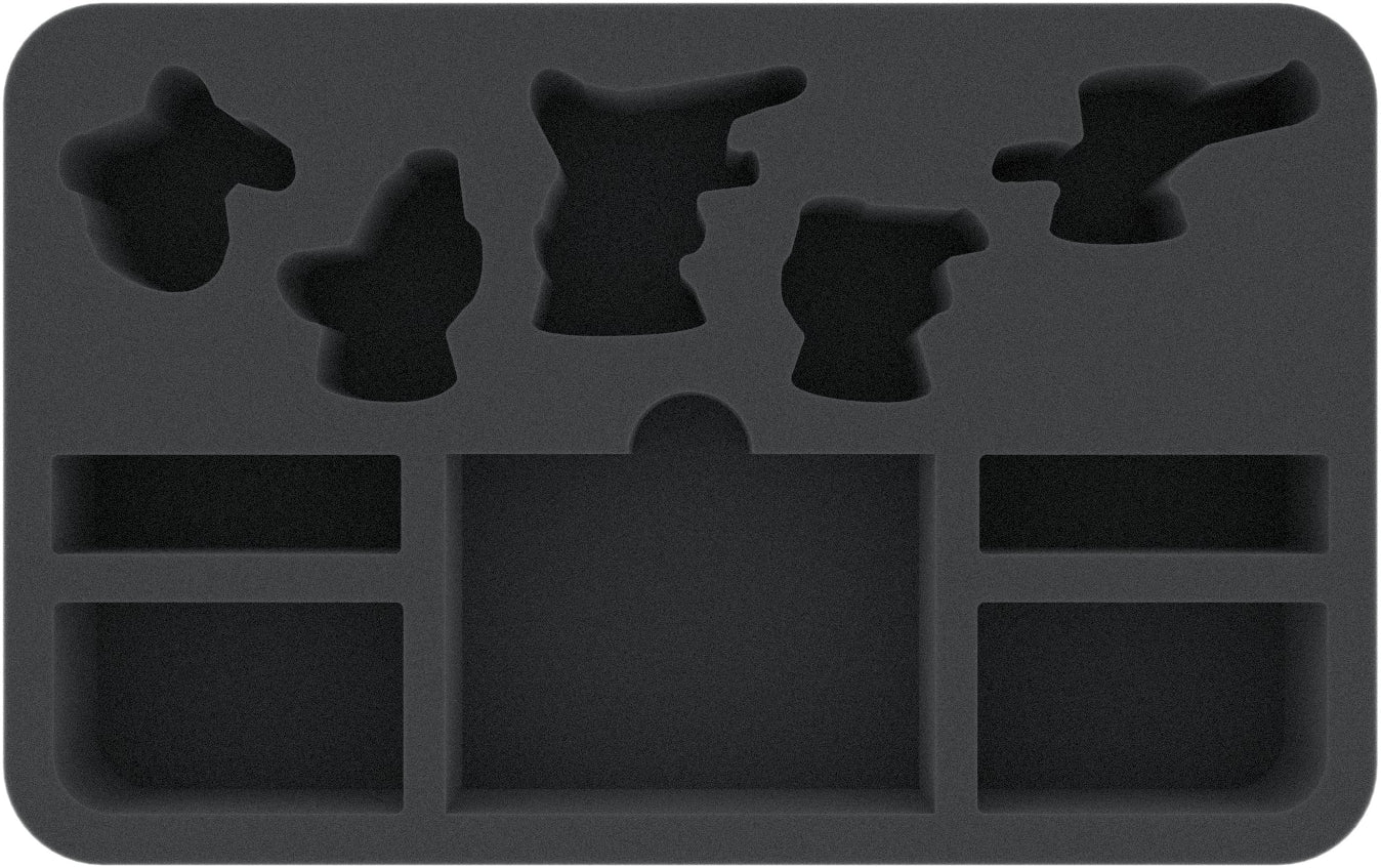 All five figures find their safe haven in five compartments tailored exactly to fit. Especially with painted figures, safe storage is important so that colors are retained and do not flake off. Sensitive parts, such as swords or pedestals, are also protected from bending or breaking.