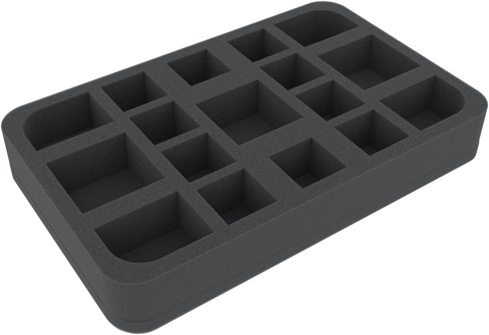 This foam tray has 17 differently sized compartments. The tray has the following dimensions: 275 mm x 172,5 mm x 50 mm