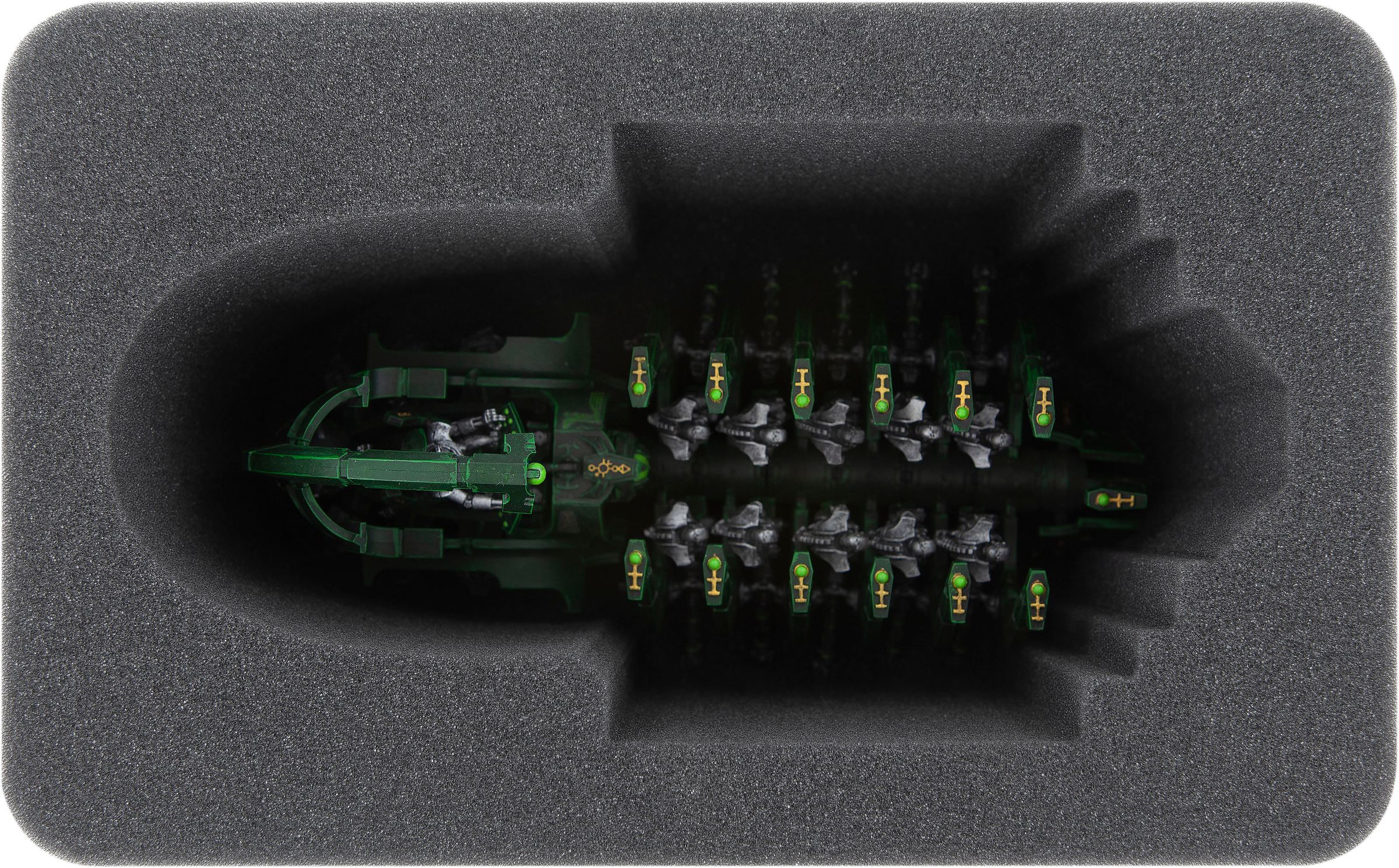 A large, miniature-precise tailored compartment accommodates the Ark of the Necrons which provides optimum protection for this impressive model. The soft foam not only protects the many details, such as the gauss flayers on the sides, but also the paint and transfer pictures of the finished colored miniature remain unharmed.