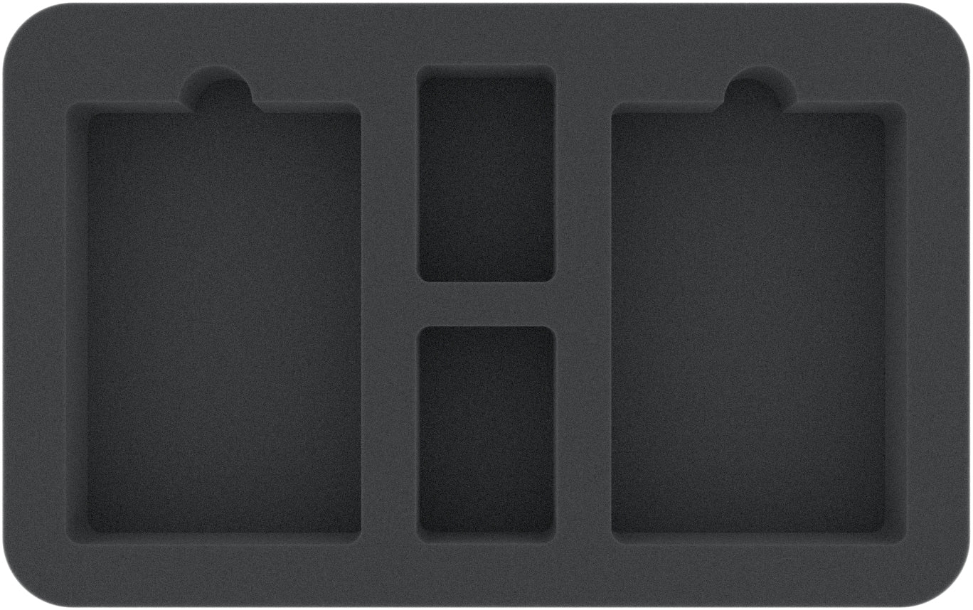 This 40 mm high foam tray is divided into 4 compartments. It is particularly suitable for the safe storage of tabletop and board game miniatures, as well as other fragile models and small parts.