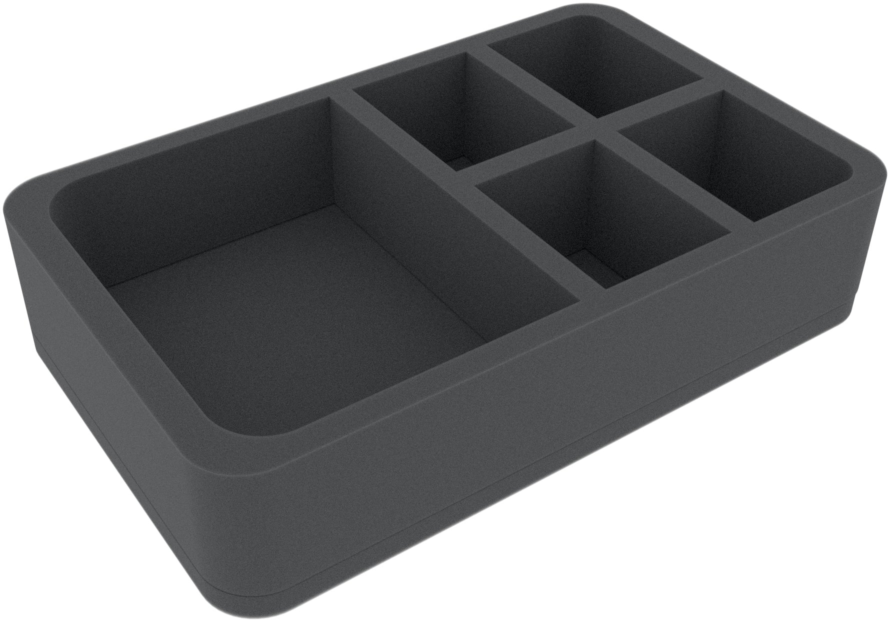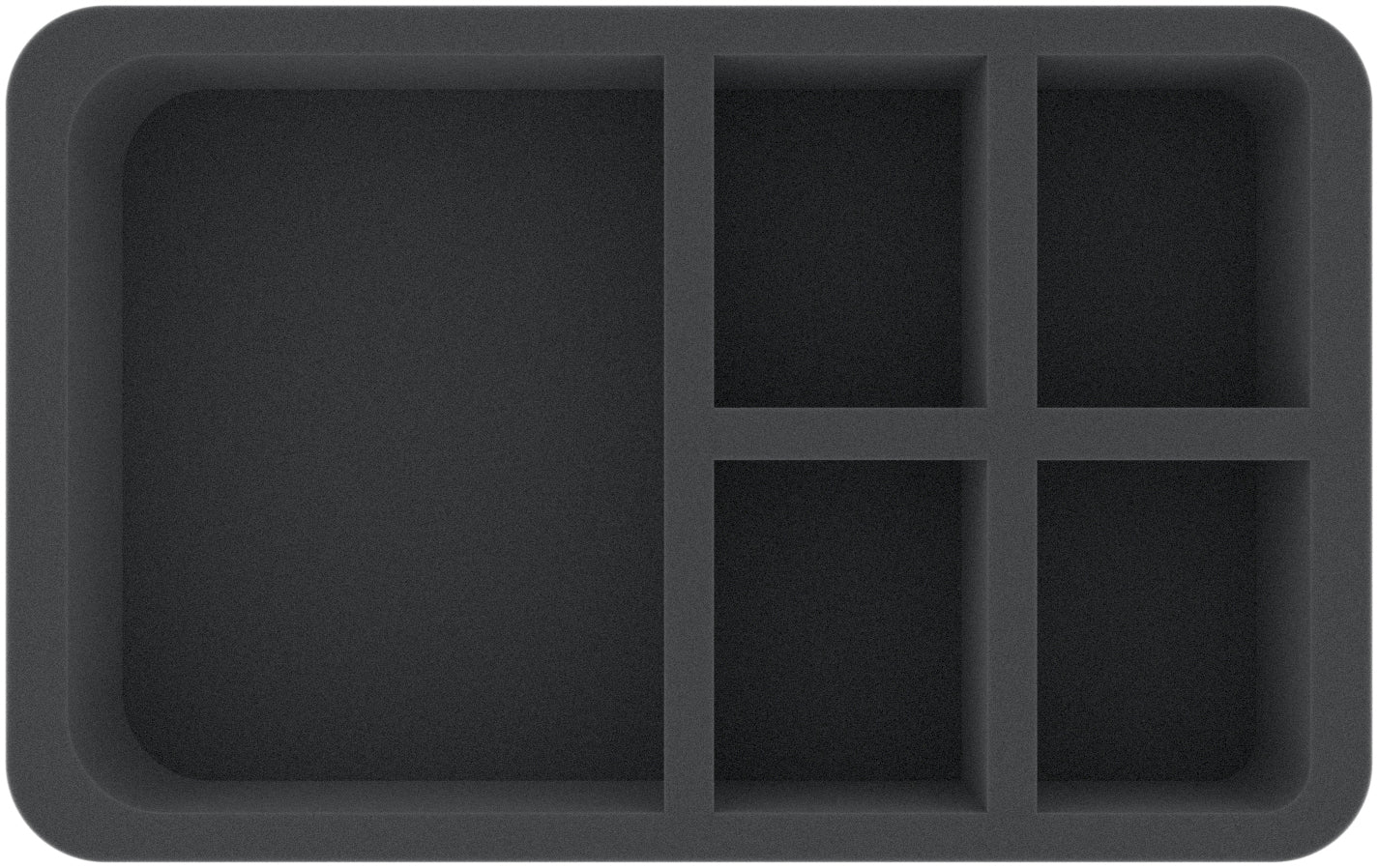 This 60 mm high foam tray is divided into 5 compartments. It is particularly suitable for the safe storage of tabletop and board game miniatures, as well as other fragile models and small parts.