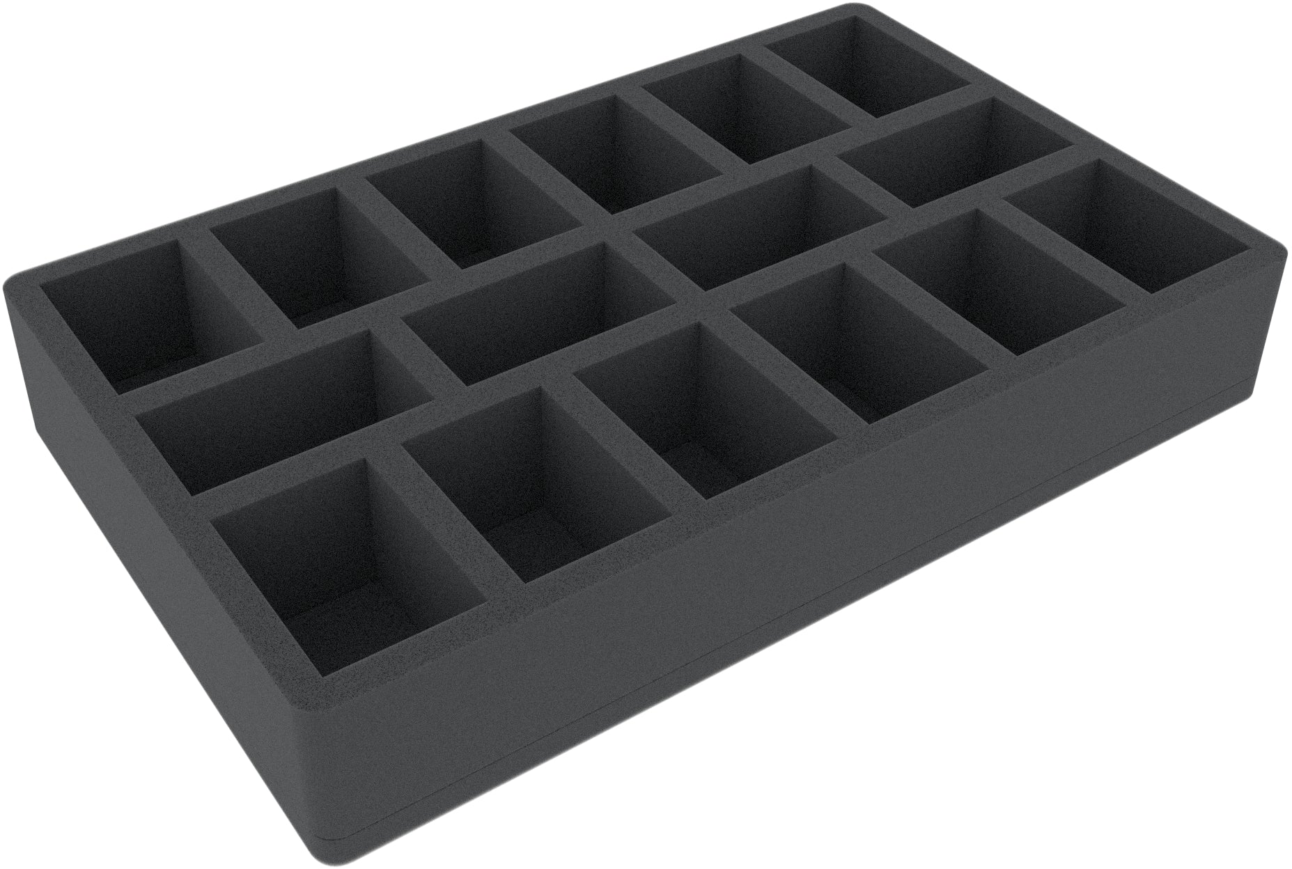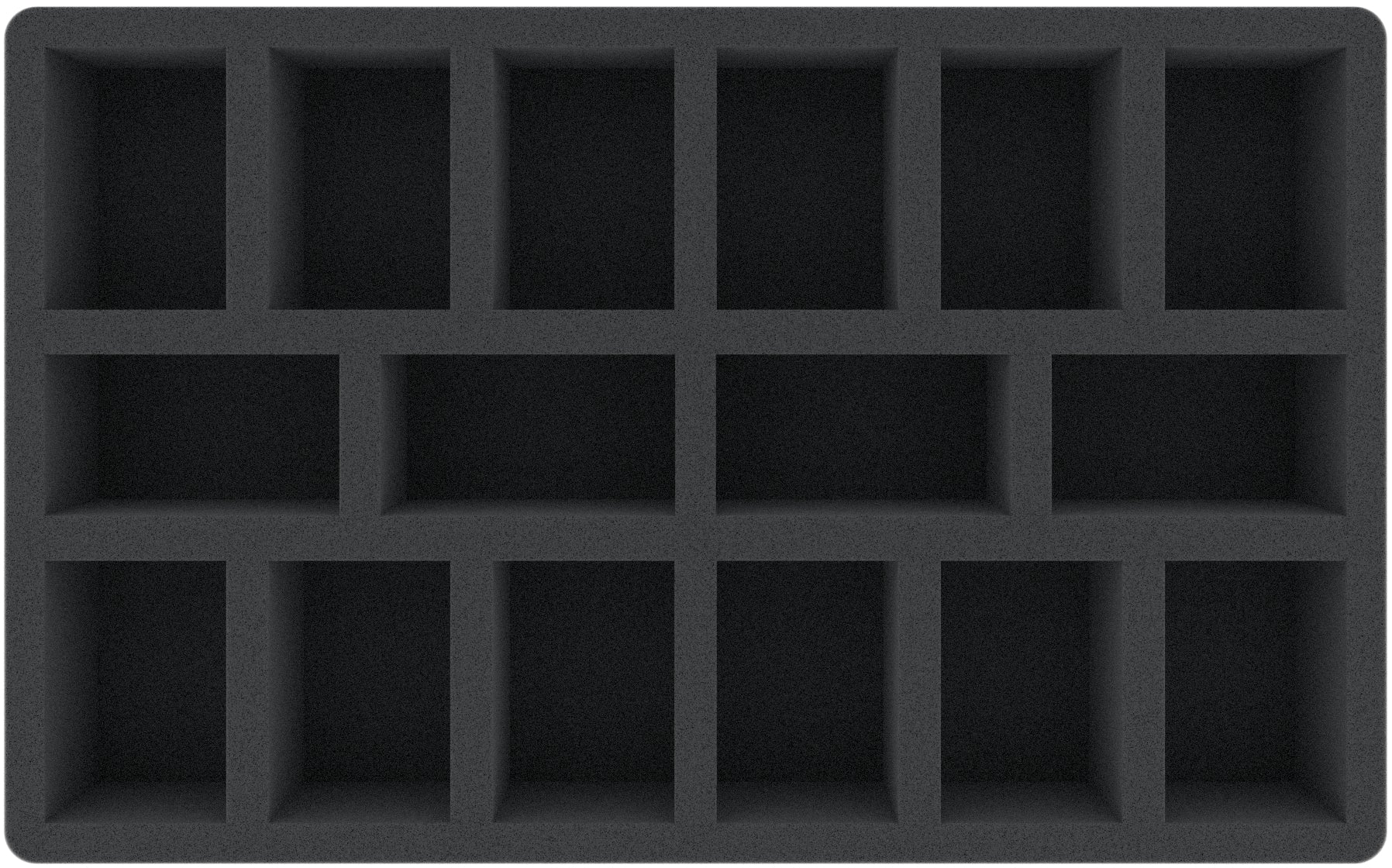 This 55 mm tall foam tray is divided into 16 compartments. It is particularly suitable for the safe storage of tabletop and board game miniatures, as well as other fragile models and small parts.