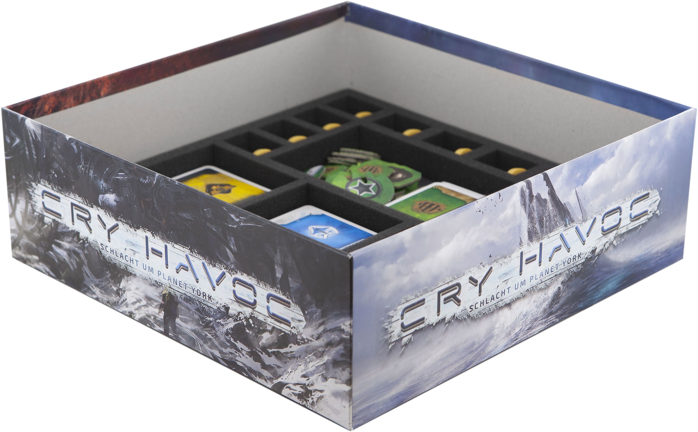 We at Feldherr devised a sorting system to make sure your units are always at your disposal. Our foam set for the Cry Havoc Original board game box allows you to sort and store All game material, including units, tokens, headquarters, you name it …