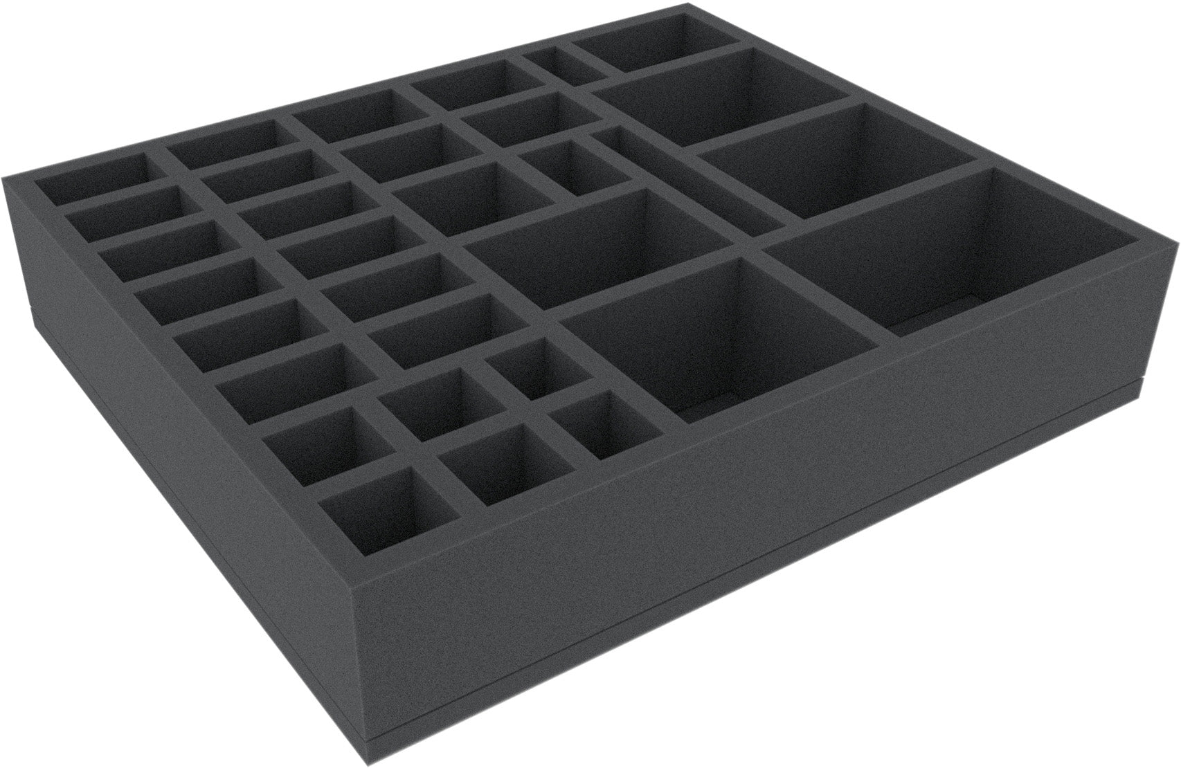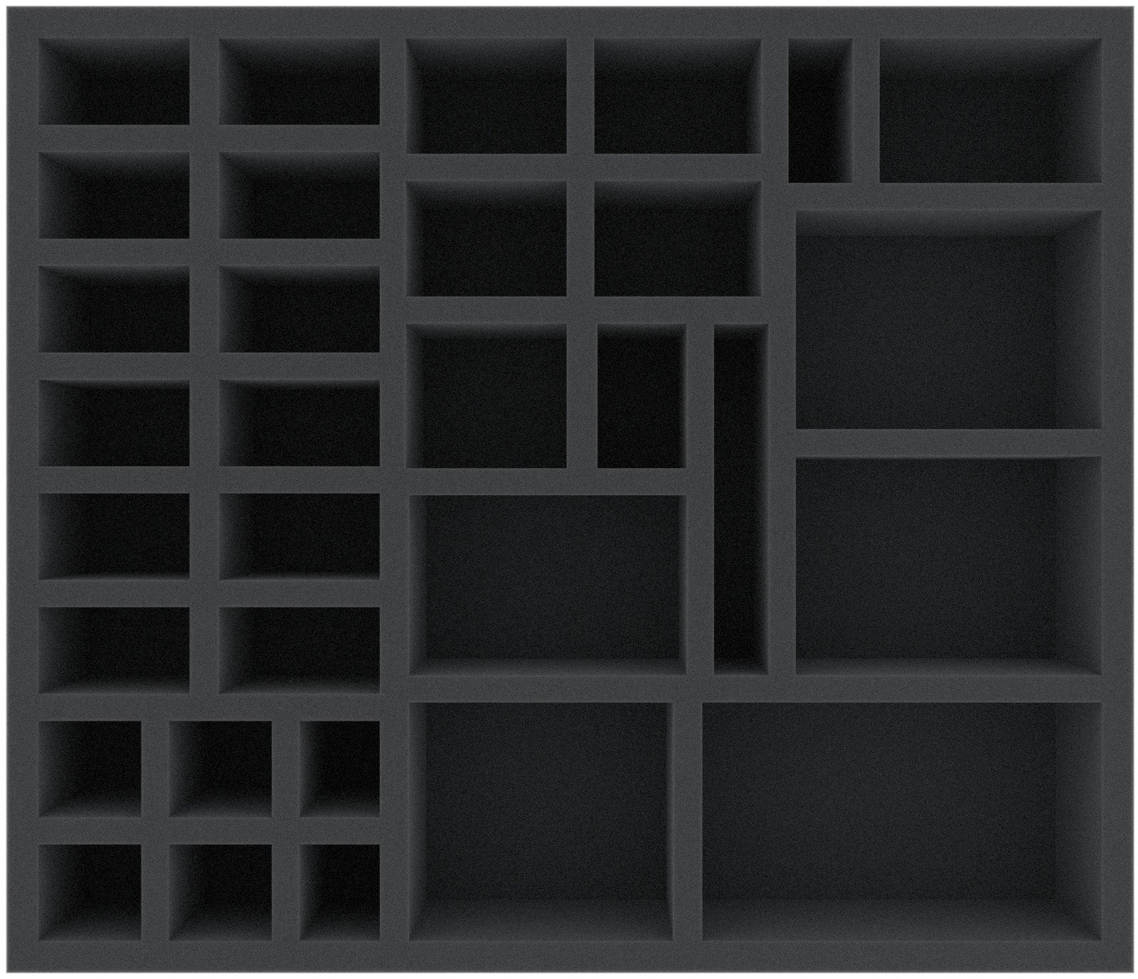 Questo vassoio in schiuma ha 32 scomparti per la conservazione sicura e ordinata di gettoni, pennarelli, dadi, carte e/o miniature. Si adatta a molte scatole di gioco originali.