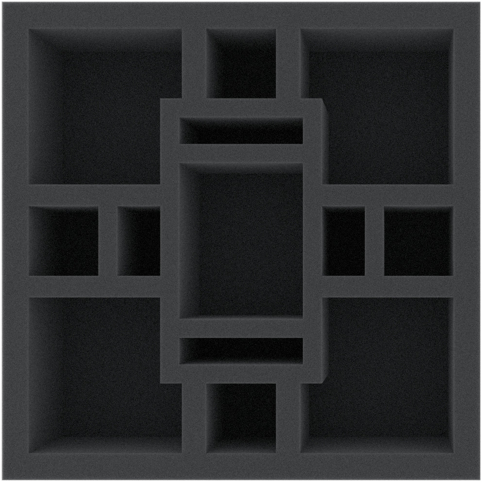 Questo vassoio di schiuma è diviso in 13 scomparti. È particolarmente adatto per la conservazione sicura di miniature e materiale di gioco. Questo inserto è adatto anche come intarsio per il grande scomparto dell'AFLC100BO.
