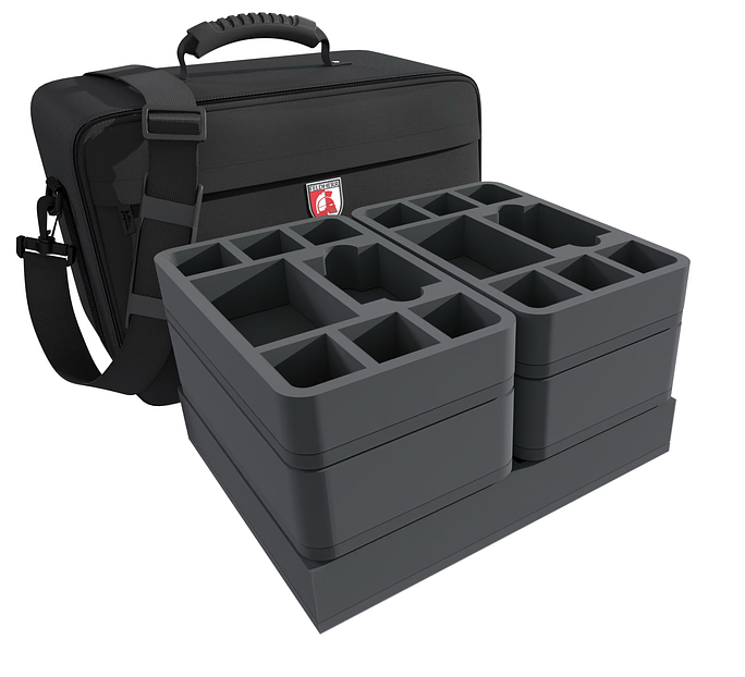 Con la borsa Maxi Plus potrete tenere il vostro esercito in un unico posto, sia per conservarlo a casa che per trasportarlo in sicurezza alla prossima partita. La combinazione di diversi inserti a grandezza naturale e a metà grandezza e di un topper in schiuma rende più facile preparare le forze in anticipo, velocizzare l'allestimento al tavolo e proteggere i modelli tra una battaglia e l'altra.
