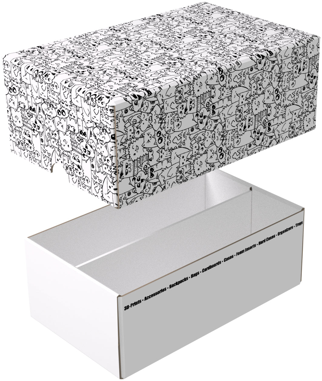 Un divisorio divide la scatola in due scomparti di uguali dimensioni, assicurando che le schede rimangano ordinatamente allineate durante il trasporto.