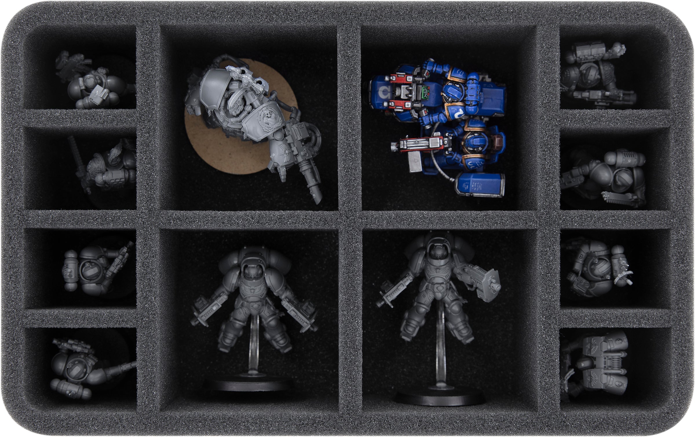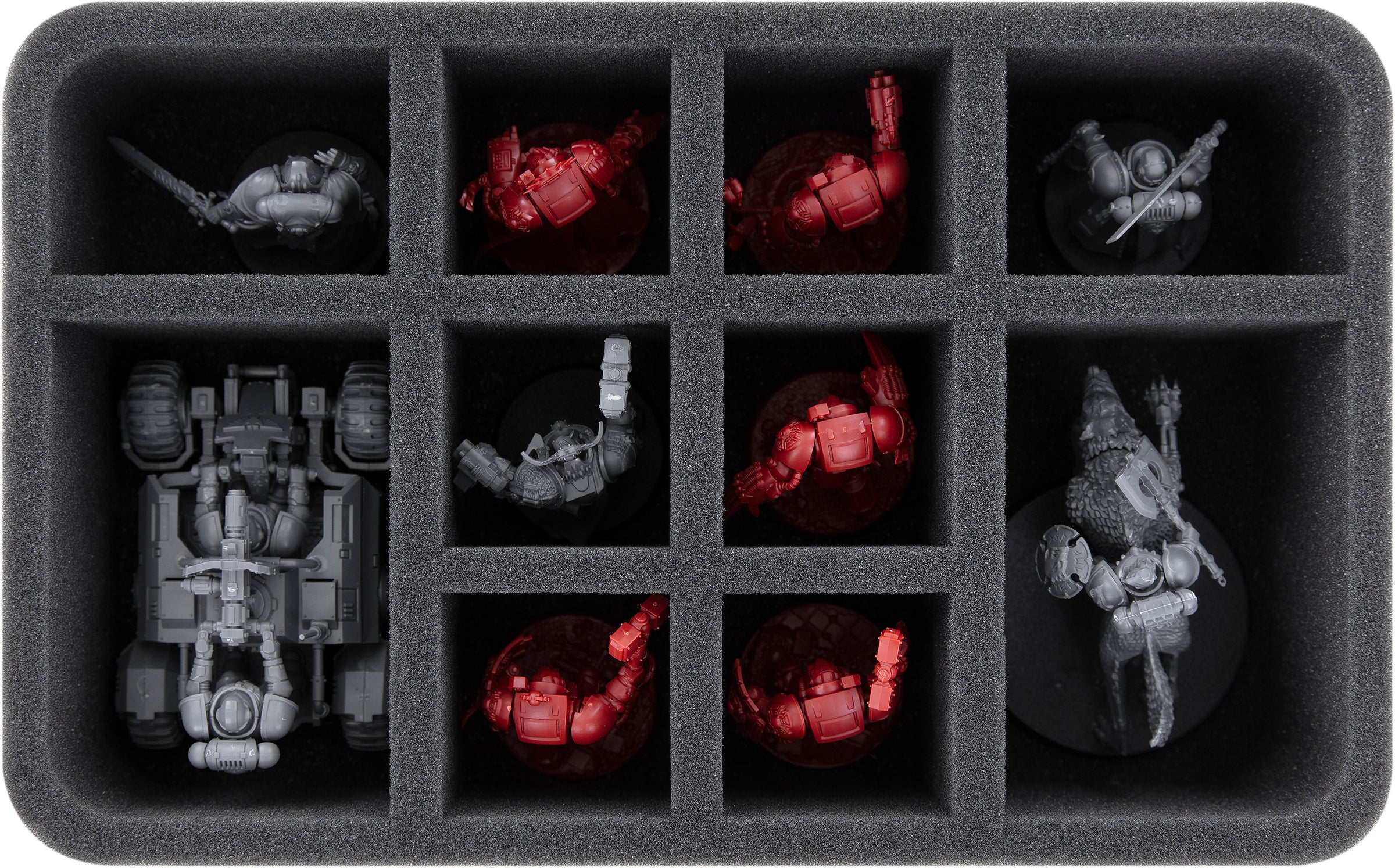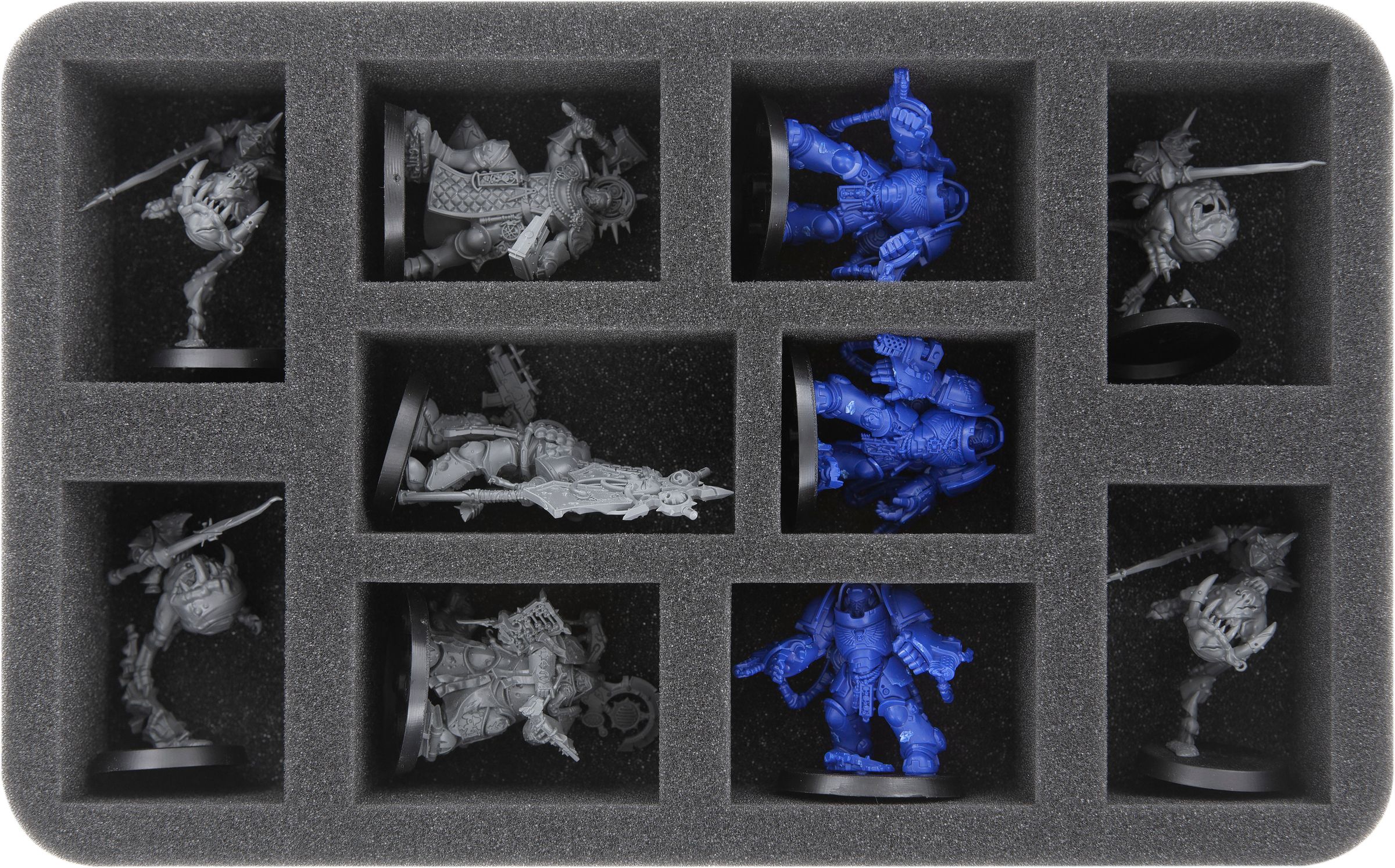- 1 vassoio in schiuma Half-Size con 10 scompartimenti per es. altri Primaris Space Marines o modelli di dimensioni simili (HSMEFF050BO)