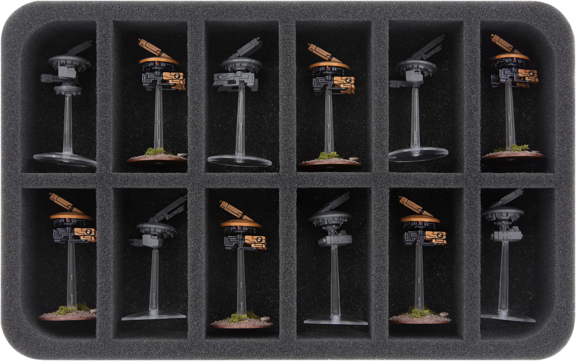 - 1 vassoio in schiuma Half-Size con 12 scomparti per es. 3 XV8 Crisis Battlesuits, 8 Fire Warriors (HSMFAA070BO)