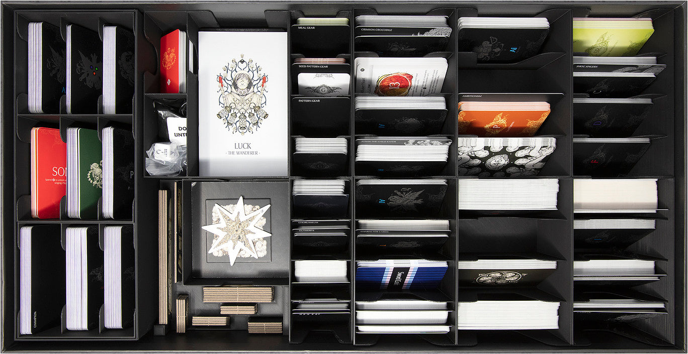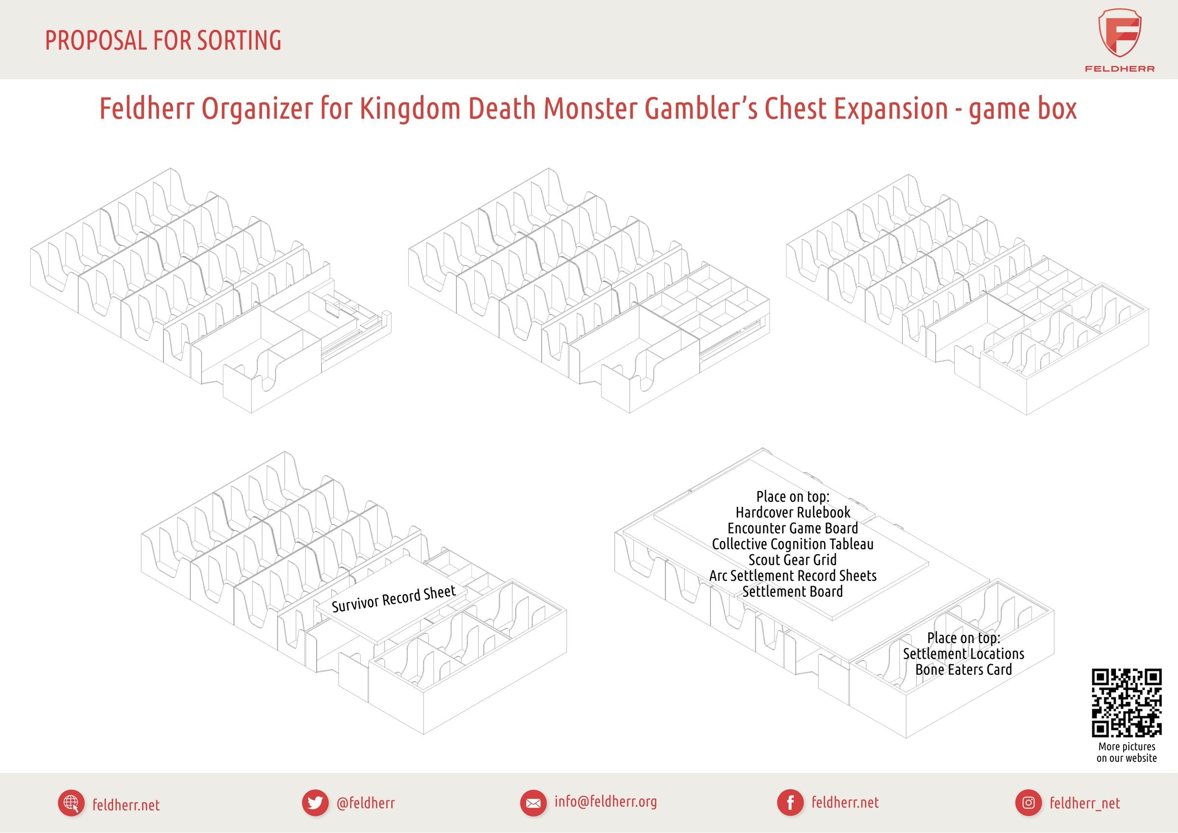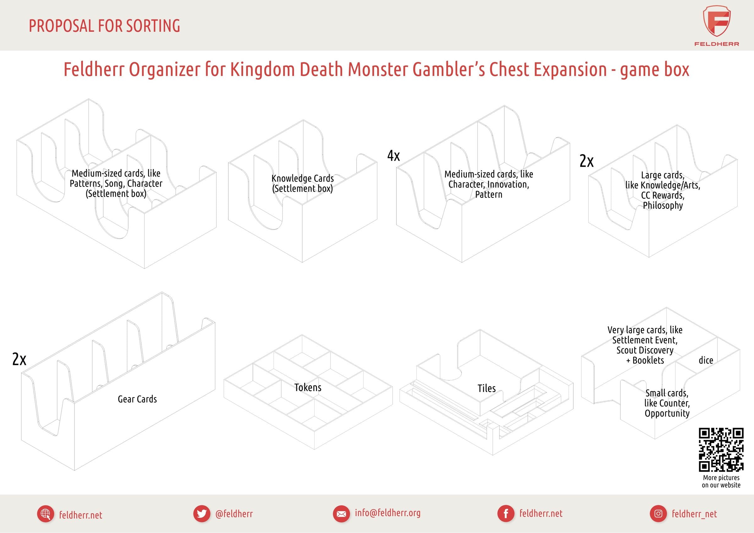 - L'Organizer si inserisce nell'scatola del gioco da tavolo originale dell'espansione Kingdom Death: Monster-Gambler's Chest.