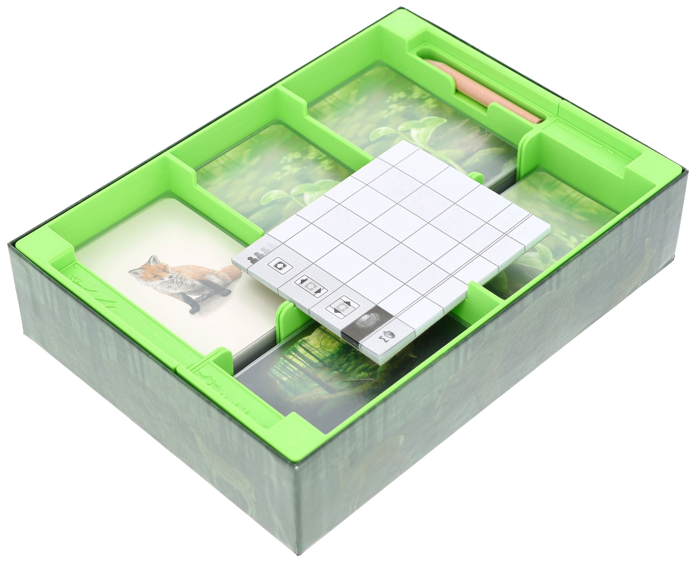- L'Organizer in plastica robusta si inserisce perfettamente nella scatola del gioco base "Forest Shuffle" (dimensioni dell'Organizer: 219 mm x 159 mm x 50 mm) e offre spazio per il gioco base e l'espansione "Alpine".