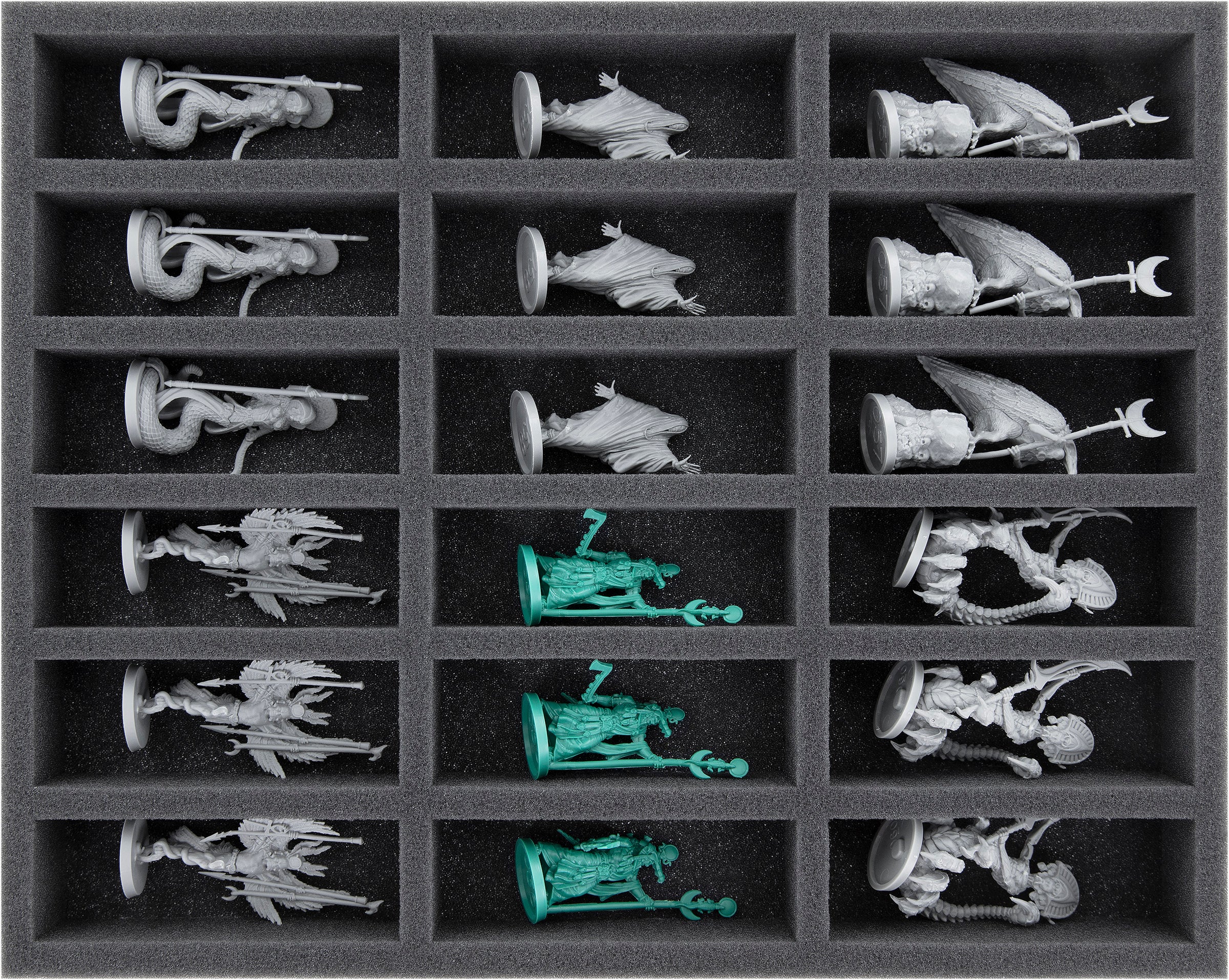 • 1 vassoio in schiuma Full-Size con 18 scomparti per miniature come Serket, Heka, Medjed, Nekhbets, Wadjet e Sobek Priests (FSMEKT040BO)