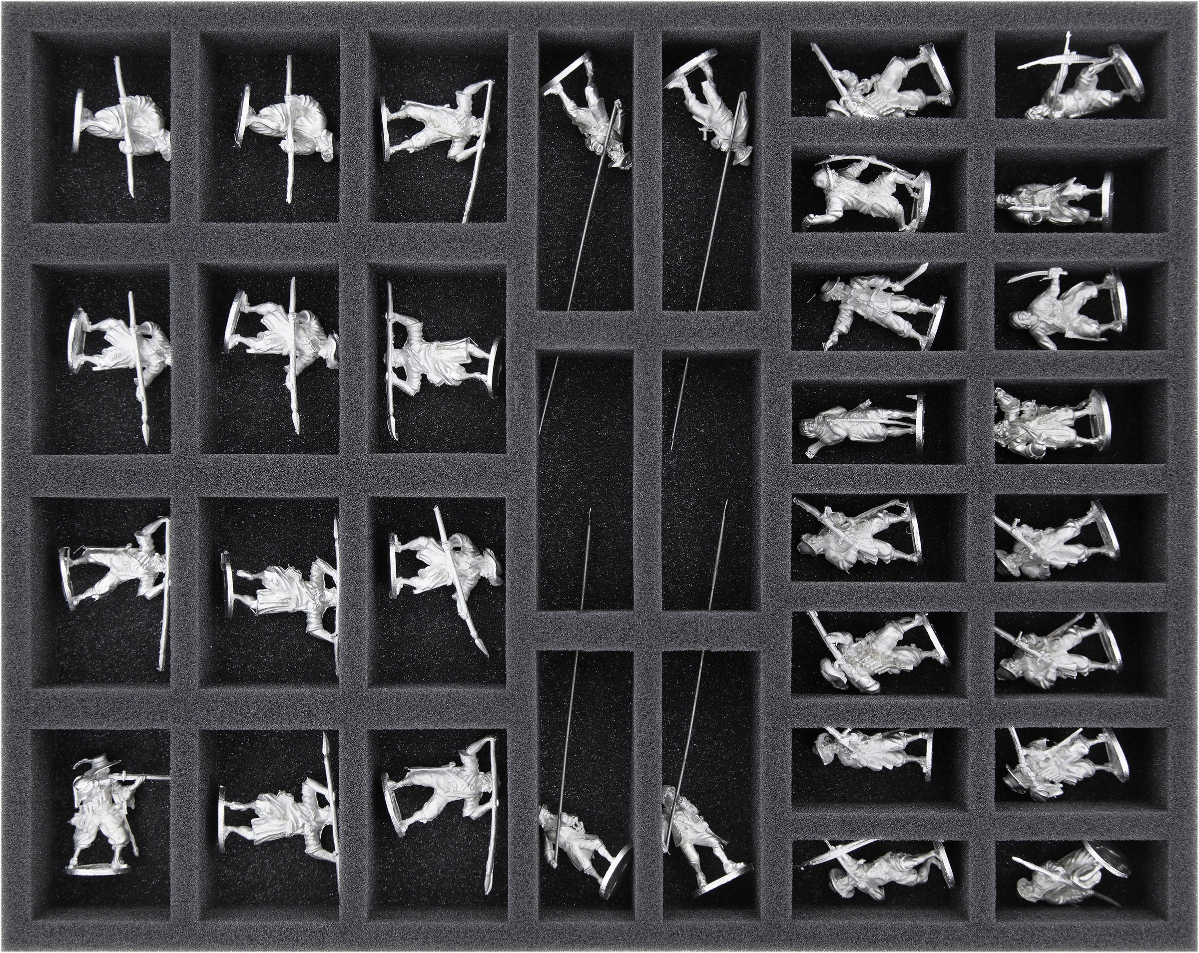 Con questo vassoio di schiuma Feldherr Full-Size fino a 34 miniature di Blood & Plunder sono conservate in modo sicuro. Gli scomparti di diverse dimensioni sono ottimi per mantenere le vostre unità organizzate e ben protette.