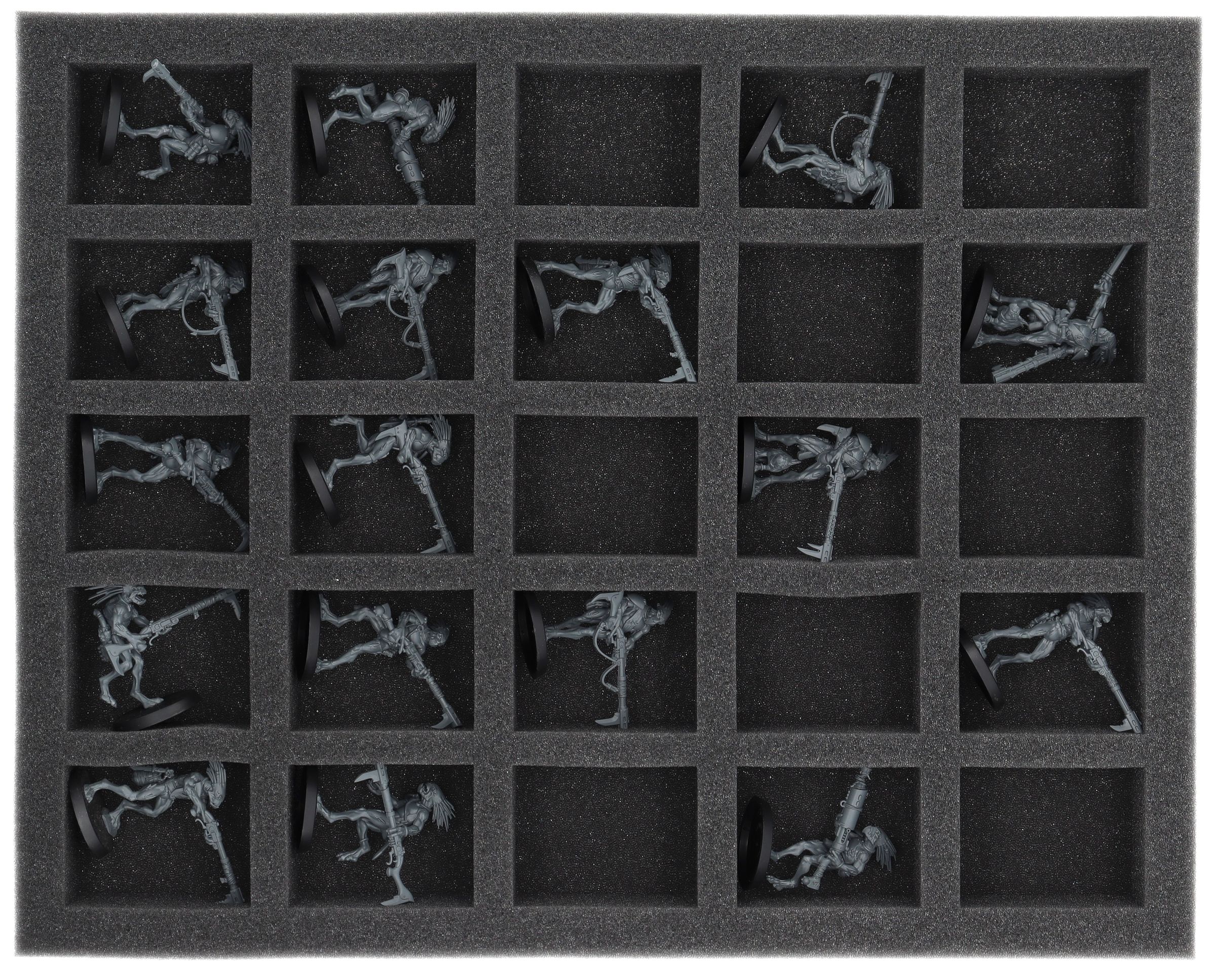 Su questo Feldherr Vassoio per schuma c'è spazio per un massimo di 25 miniature del vostro esercito. L'inserto è particolarmente adatto a contenere Kroot, Hunter e modelli di dimensioni simili.