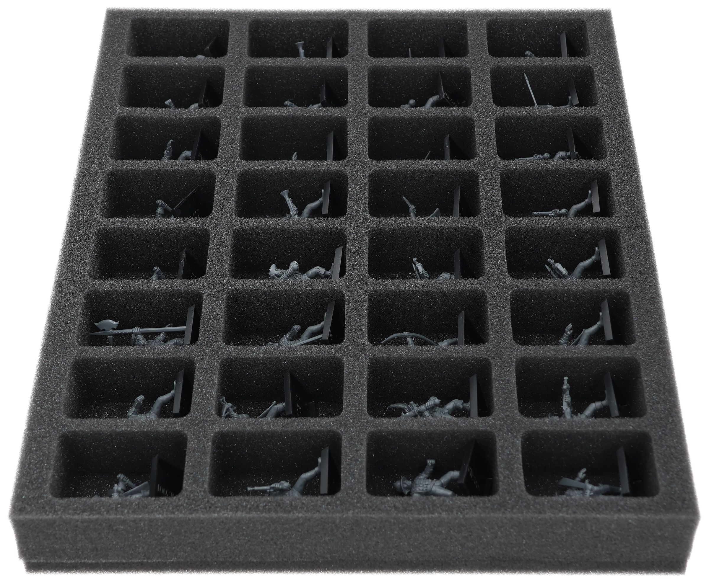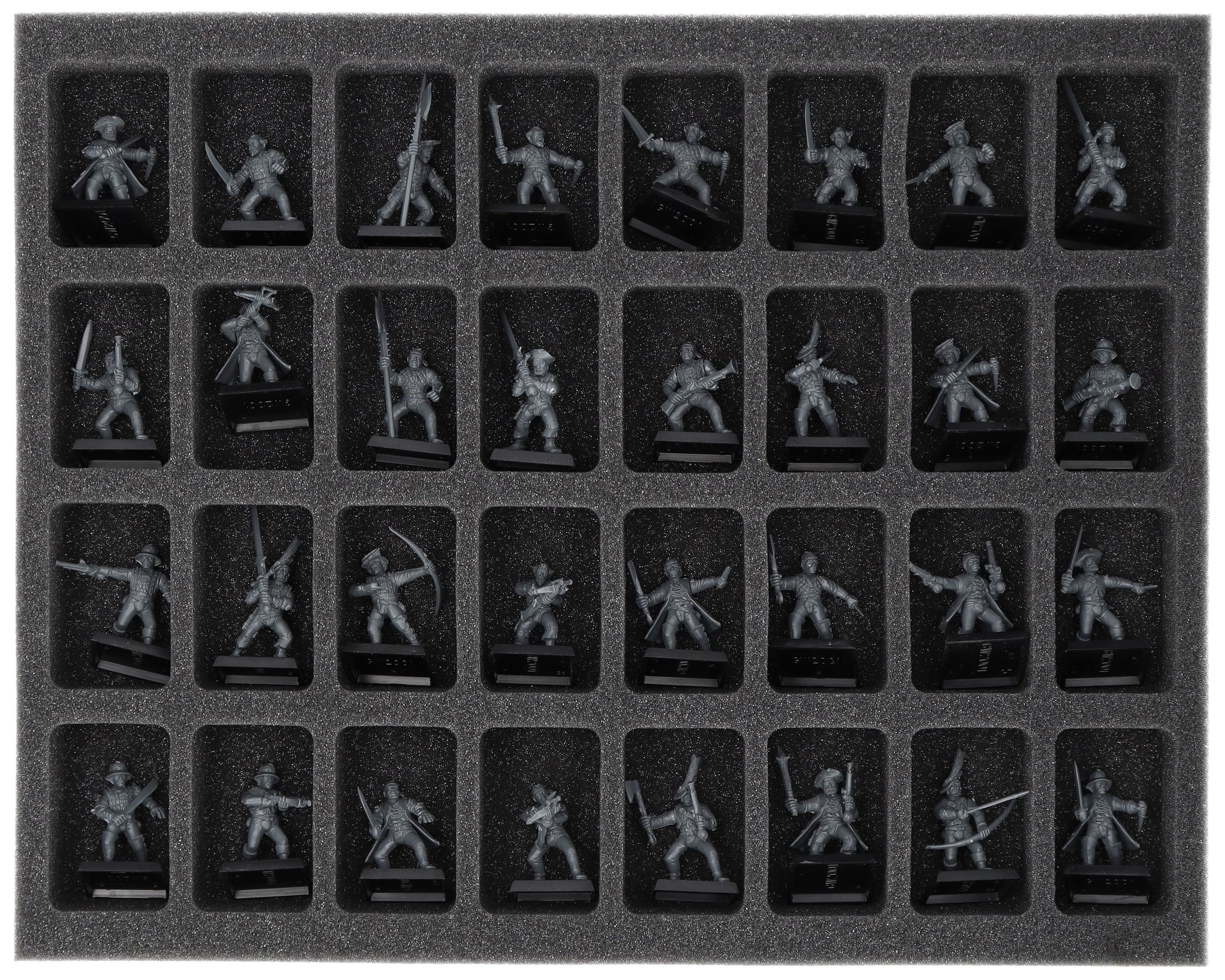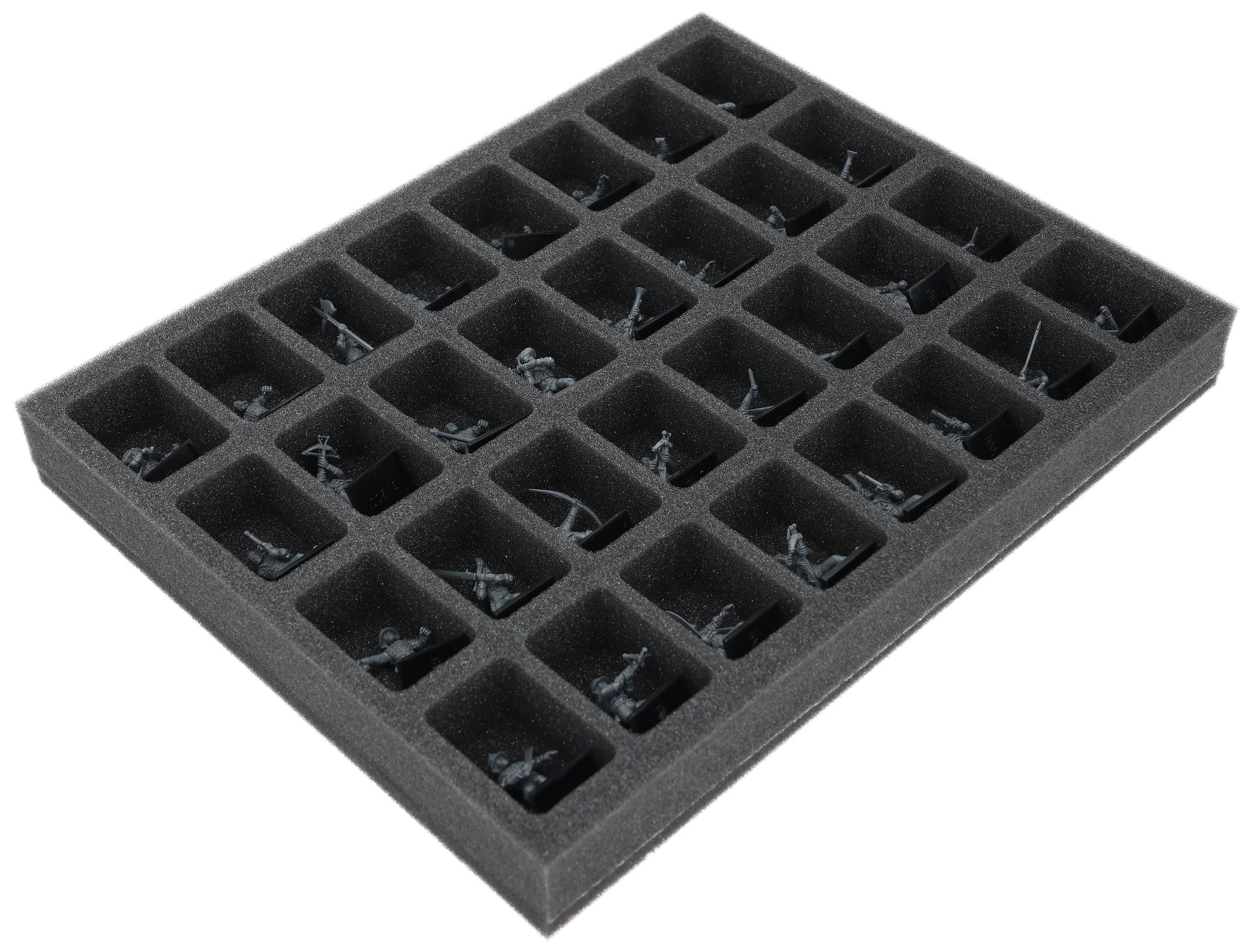 Su questo vassoio di schiuma Feldherr c'è spazio per un massimo di 32 miniature della vostra collezione di Empire of man. L'inserto è particolarmente adatto per conservare la Milizia della Compagnia Libera e modelli di dimensioni simili.