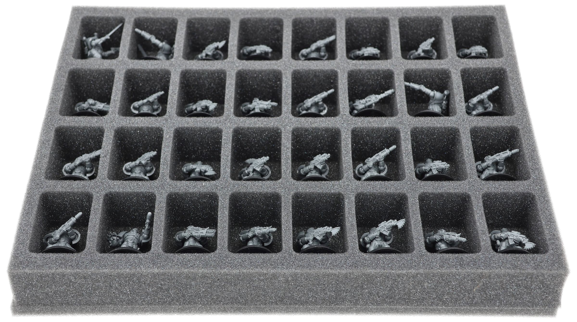 Su questo vassoio in schiuma Feldherr c'è spazio per un massimo di 32 miniature del vostro esercito. L'inserto è particolarmente adatto per conservare i Legionari Veterani MK2 (modelli standard) e modelli di dimensioni simili.