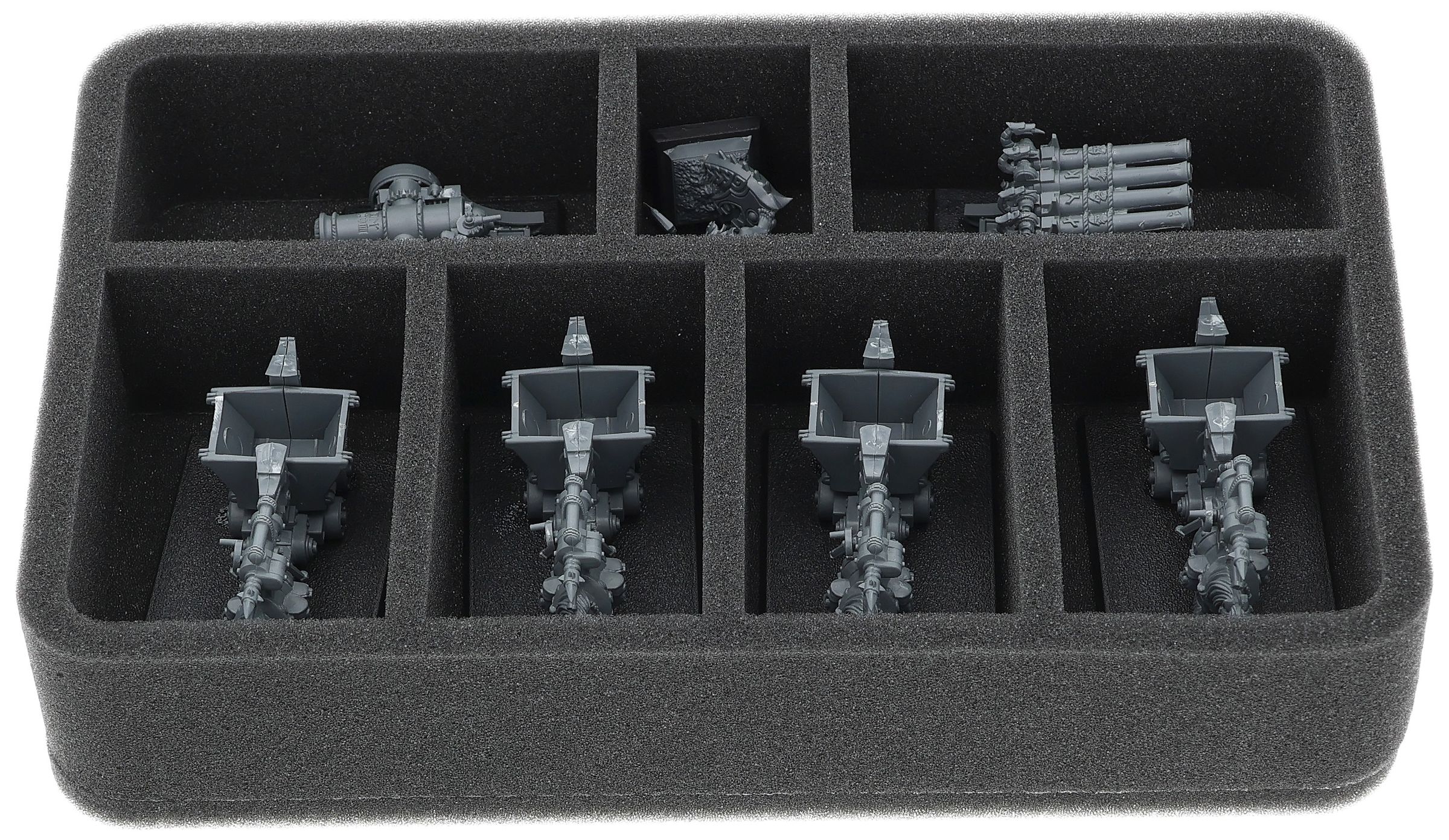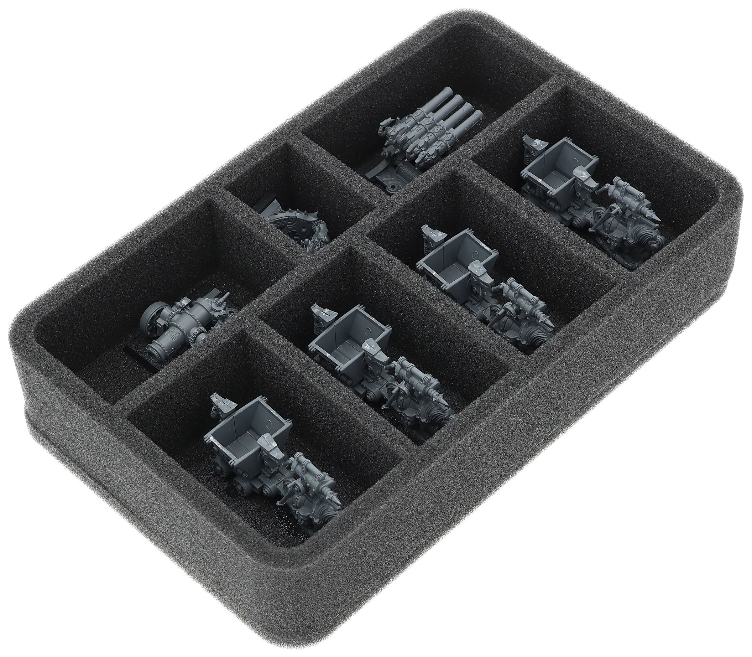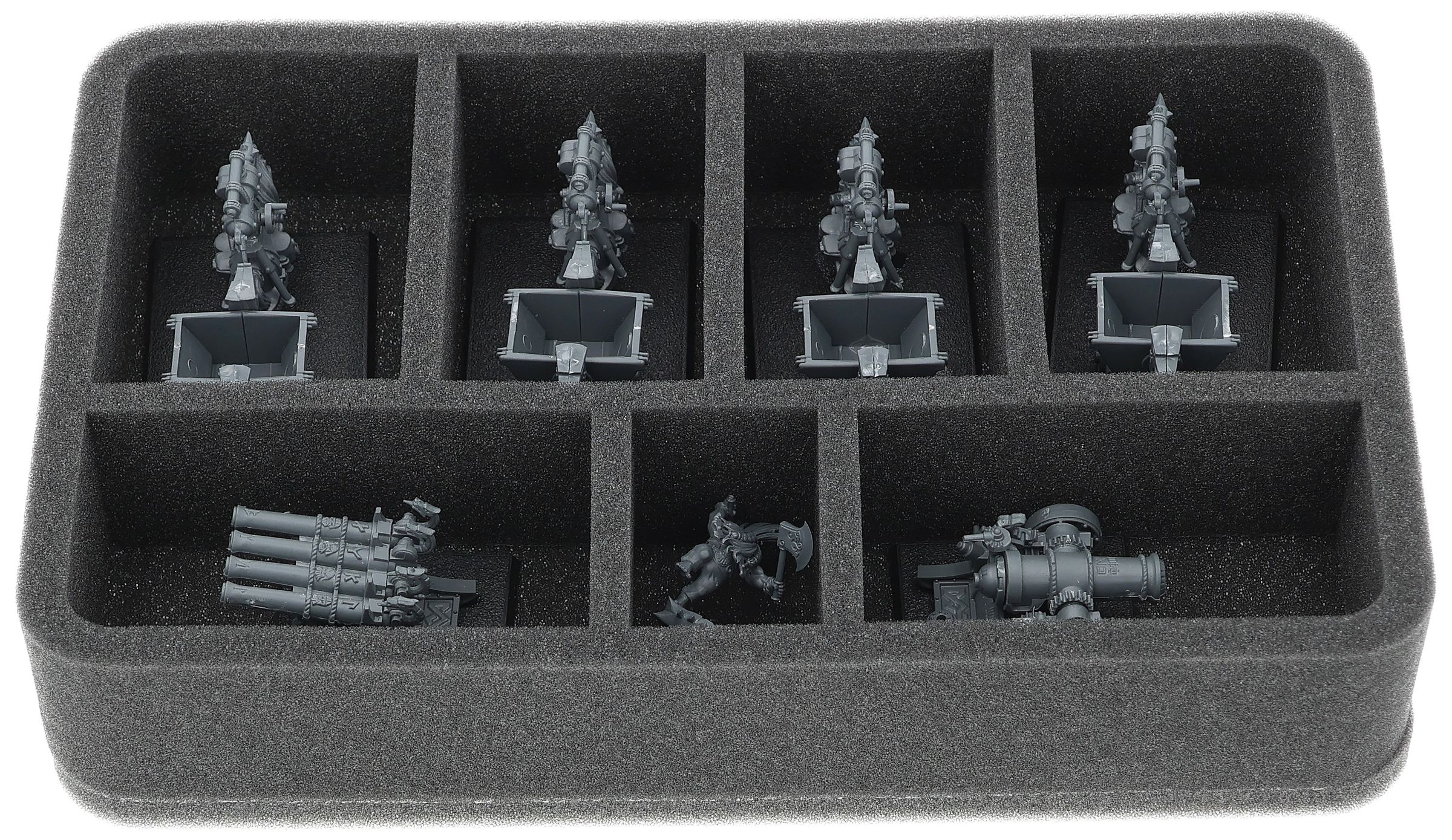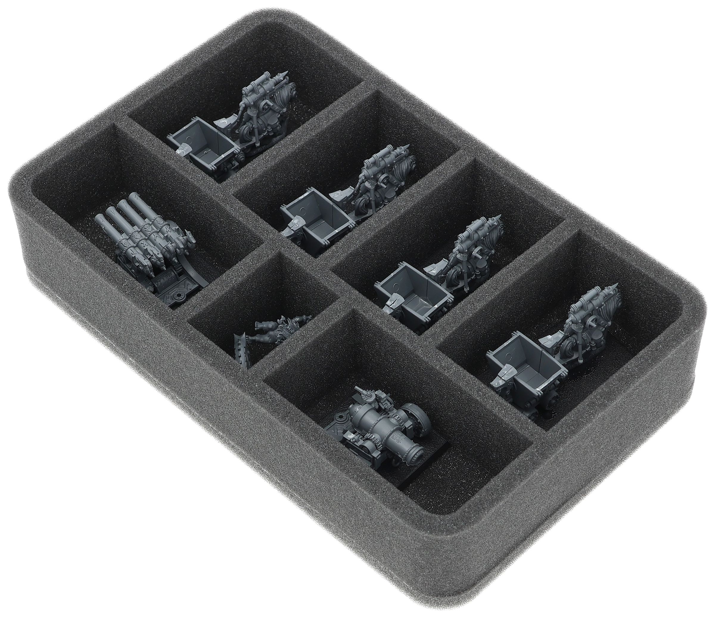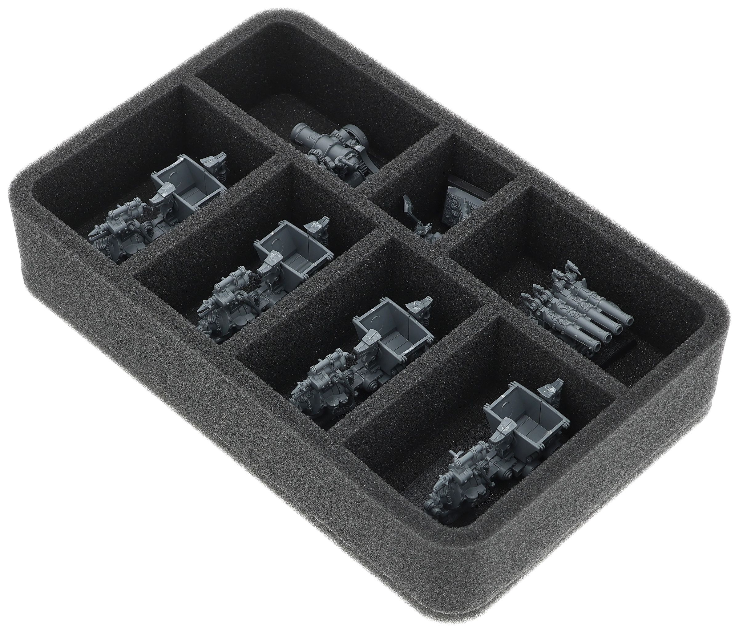 Su questo vassoio di schiuma Feldherr c'è spazio per un massimo di 7 miniature del vostro esercito. L'inserto è particolarmente adatto per riporre i Minatori Nani e modelli di dimensioni simili.