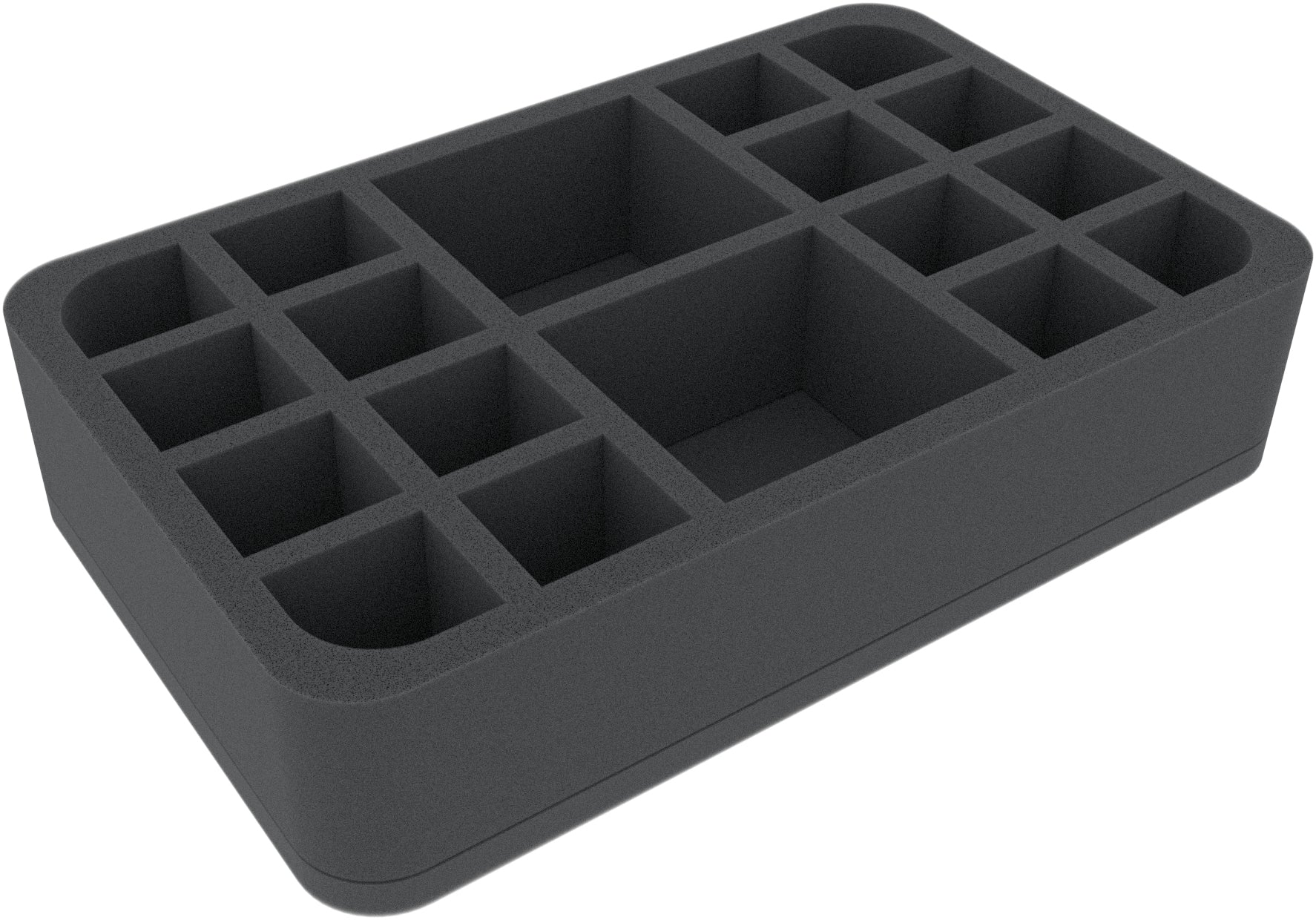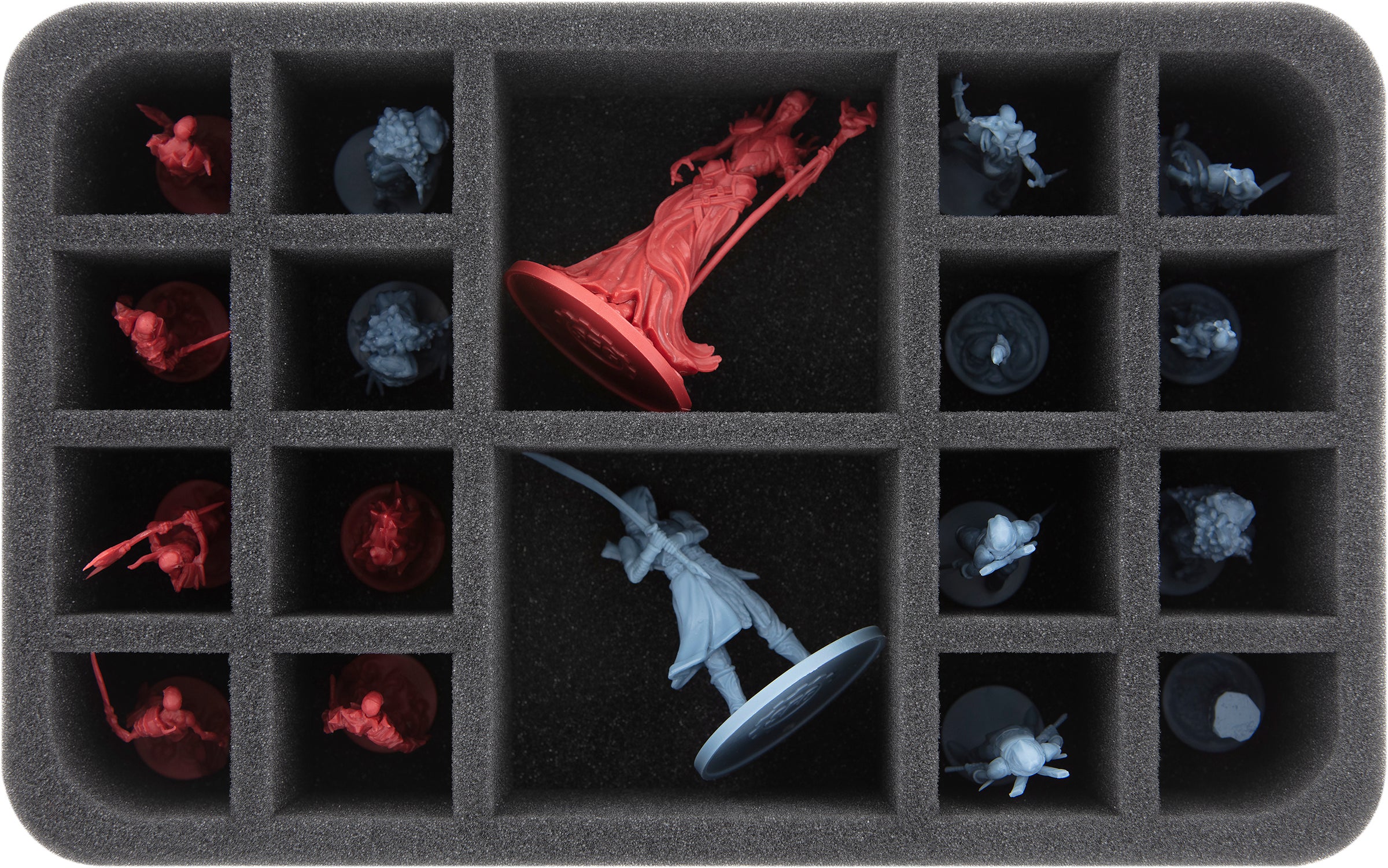 Fino a 18 miniature delle tue band da guerra trovano un posto sicuro in questo vassoio di schiuma Half-Size. Gli scomparti di diverse dimensioni sono ideali per mantenere sia i campioni che i loro seguaci chiari e ben protetti.