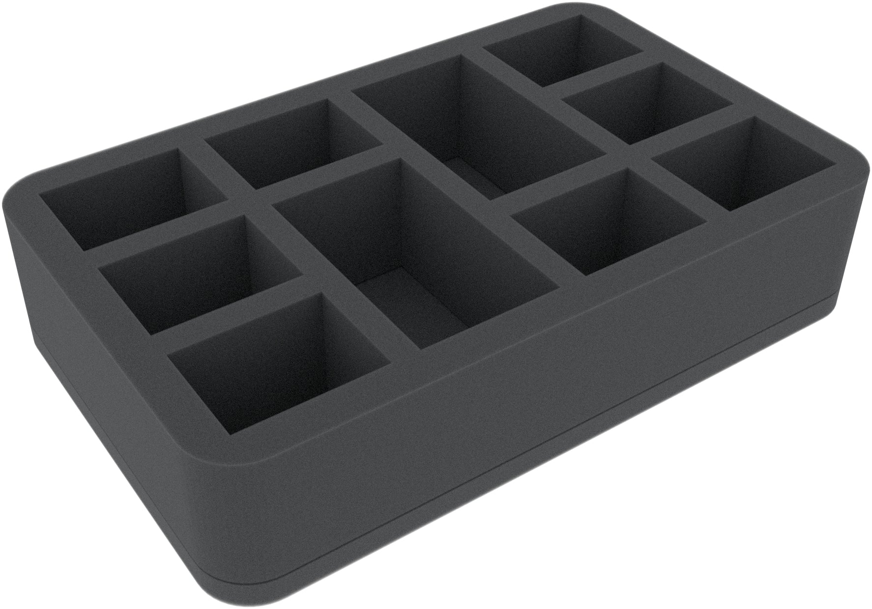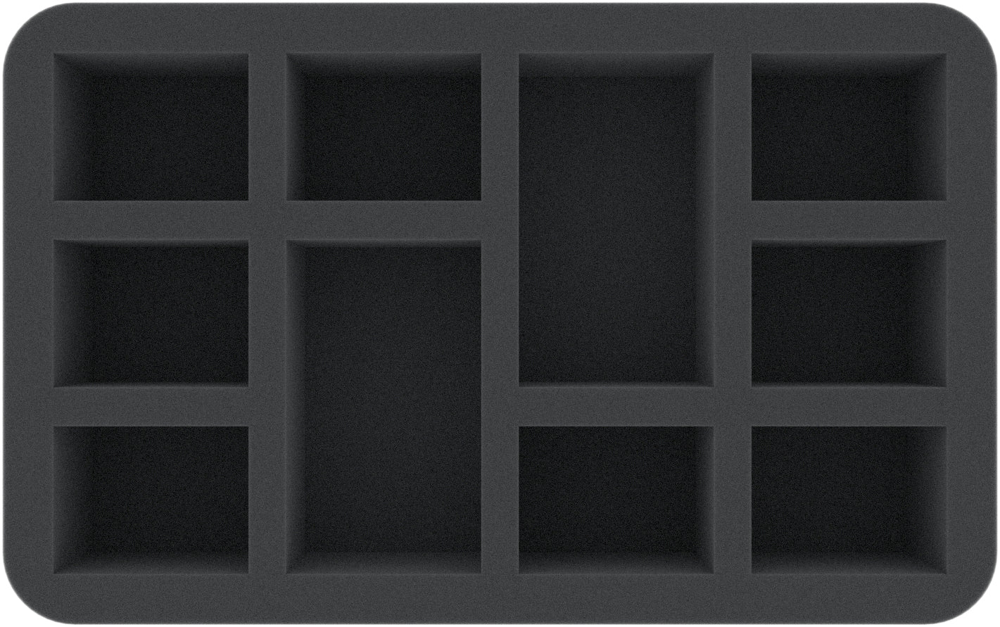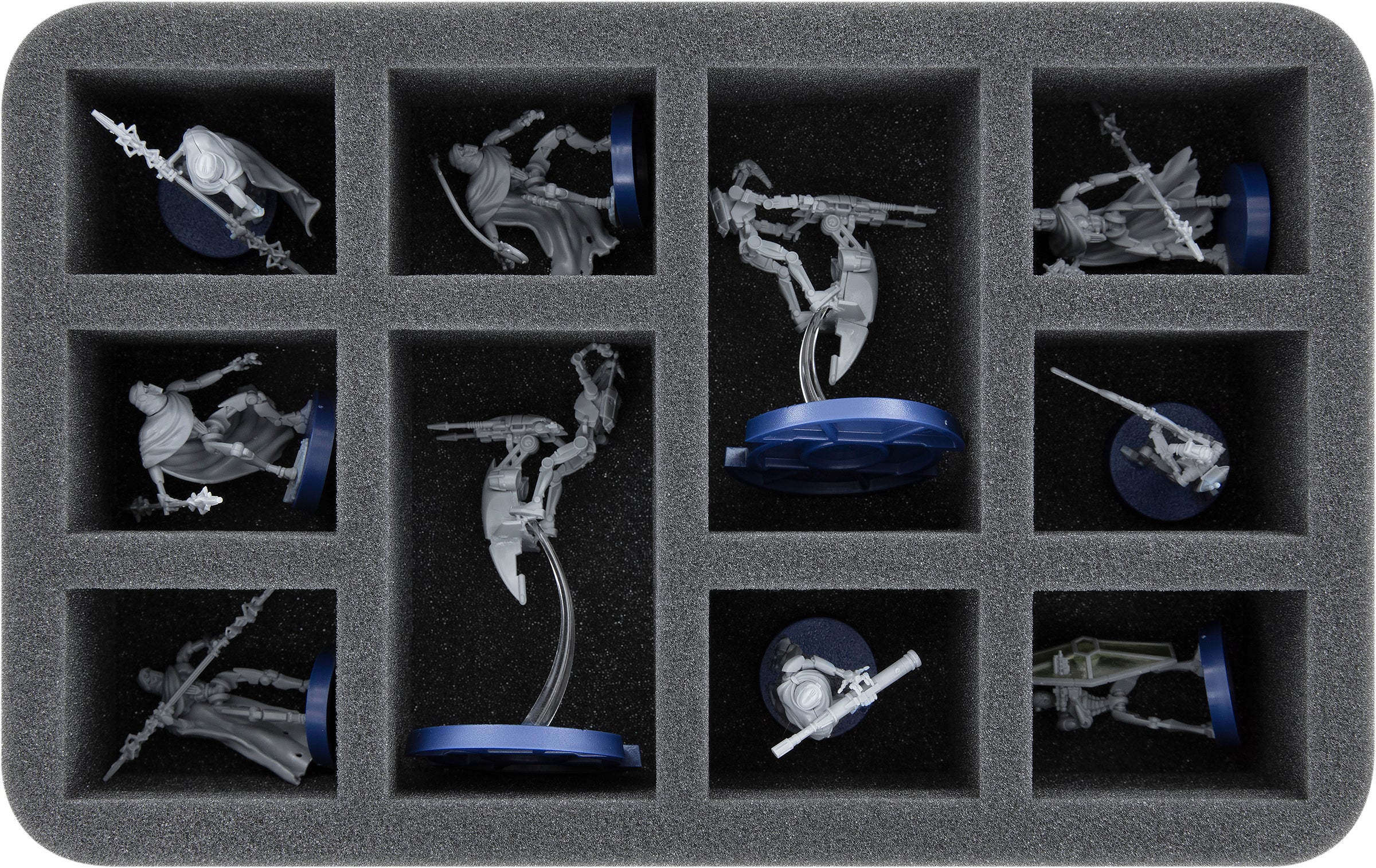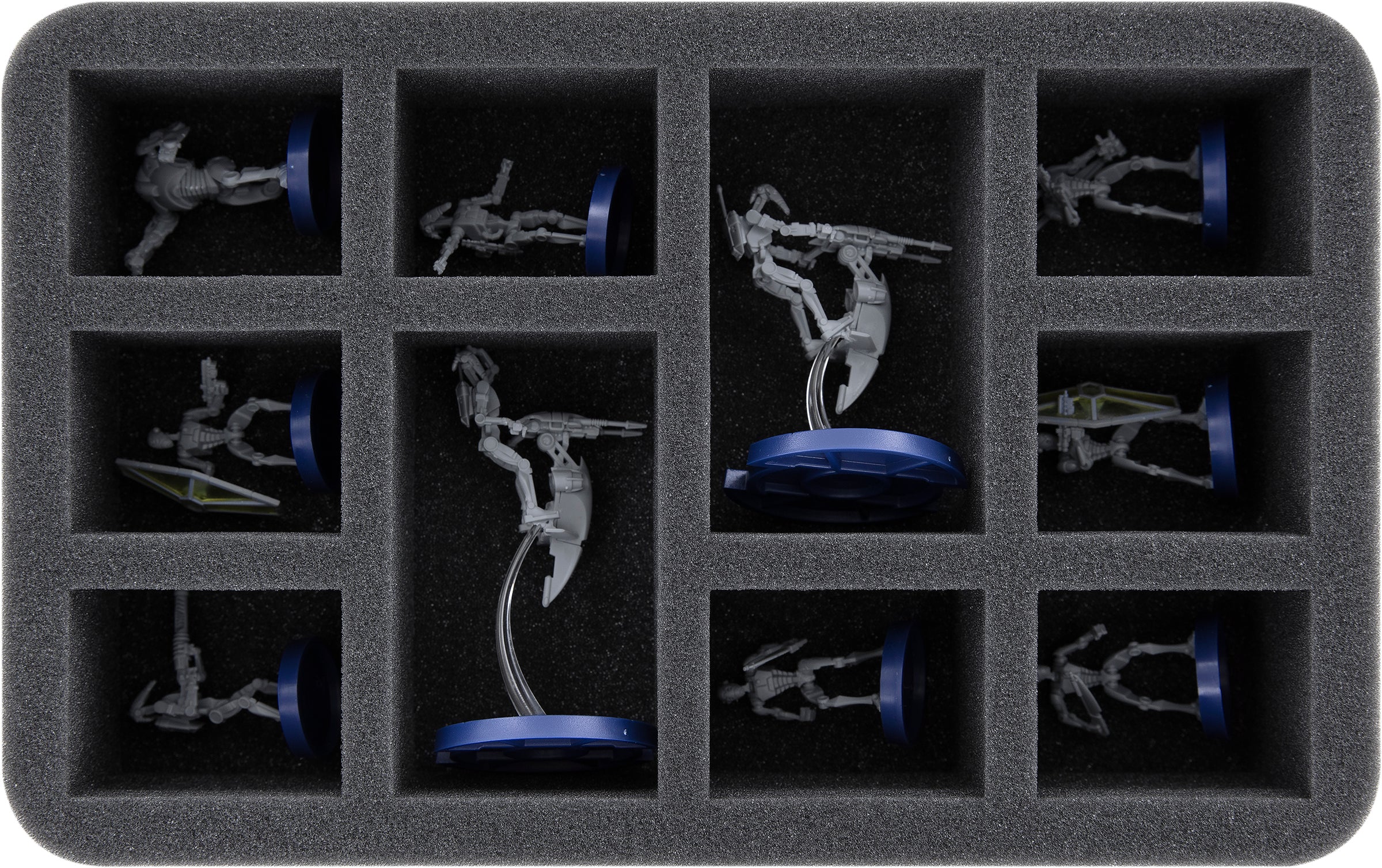Su questo vassoio in schiuma Feldherr c'è spazio per 10 miniature. L'inserto è ideale per riporre due STAP Riders e 8 unità di fanteria standard, come i soldati, i Droidi da battaglia B1 o miniature di dimensioni simili.